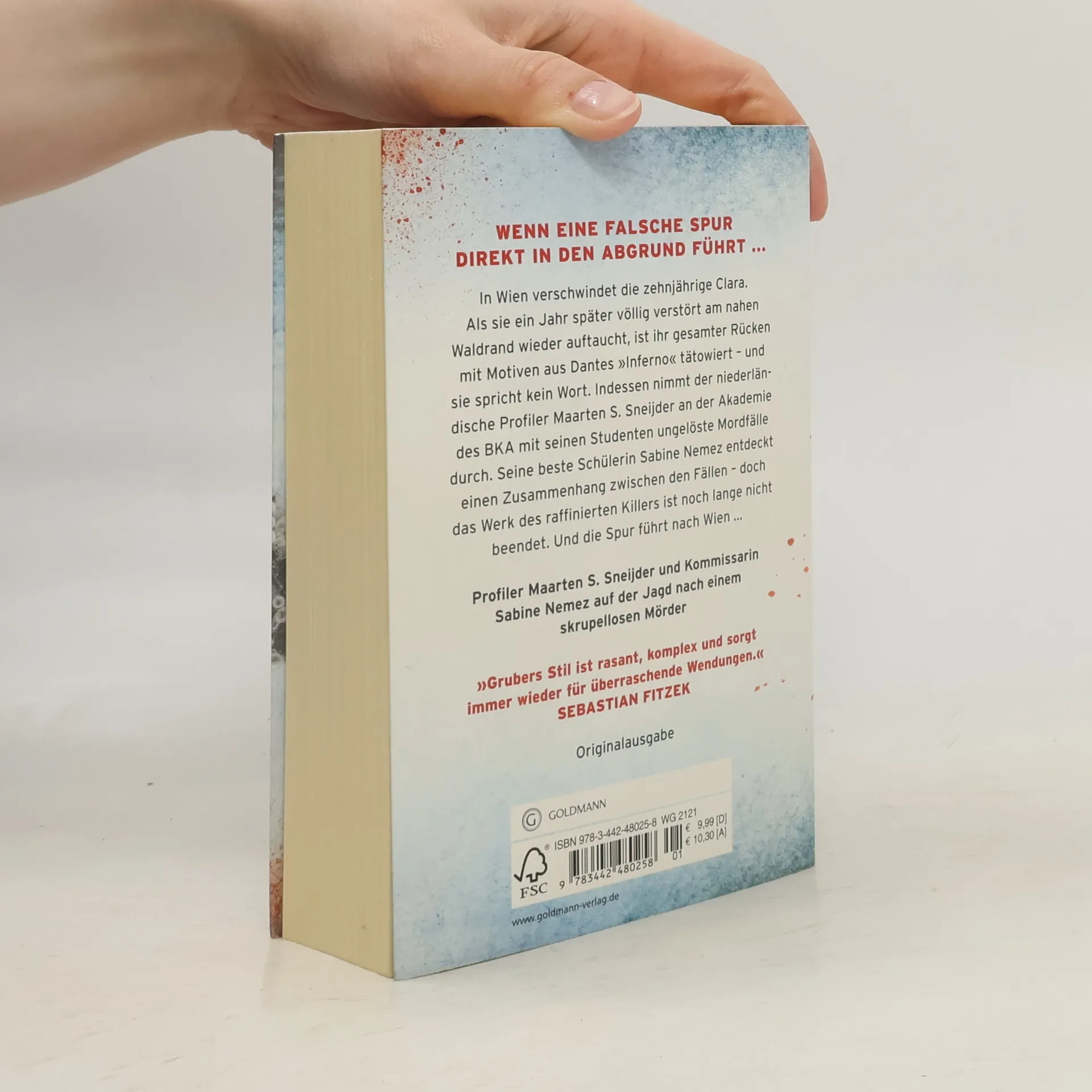 Sneijder und Nemez ermitteln wieder. In Wien verschwindet die zehnjährige Clara. Ein Jahr später taucht sie völlig verstört am nahen Waldrand wieder auf. Ihr gesamter Rücken ist mit Motiven aus Dantes „Inferno“ tätowiert – und sie spricht kein Wort. Indessen nimmt der niederländische Profiler Maarten S. Sneijder an der Akademie des BKA für hochbegabten Nachwuchs mit seinen Studenten ungelöste Mordfälle durch. Seine beste Schülerin Sabine Nemez entdeckt einen Zusammenhang zwischen mehreren Fällen – aber das Werk des raffinierten Killers ist noch lange nicht beendet. Seine Spur führt nach Wien – wo Clara die einzige ist, die den Mörder je zu Gesicht bekommen hat … Der zweite Fall für Sneijder und Nemez.