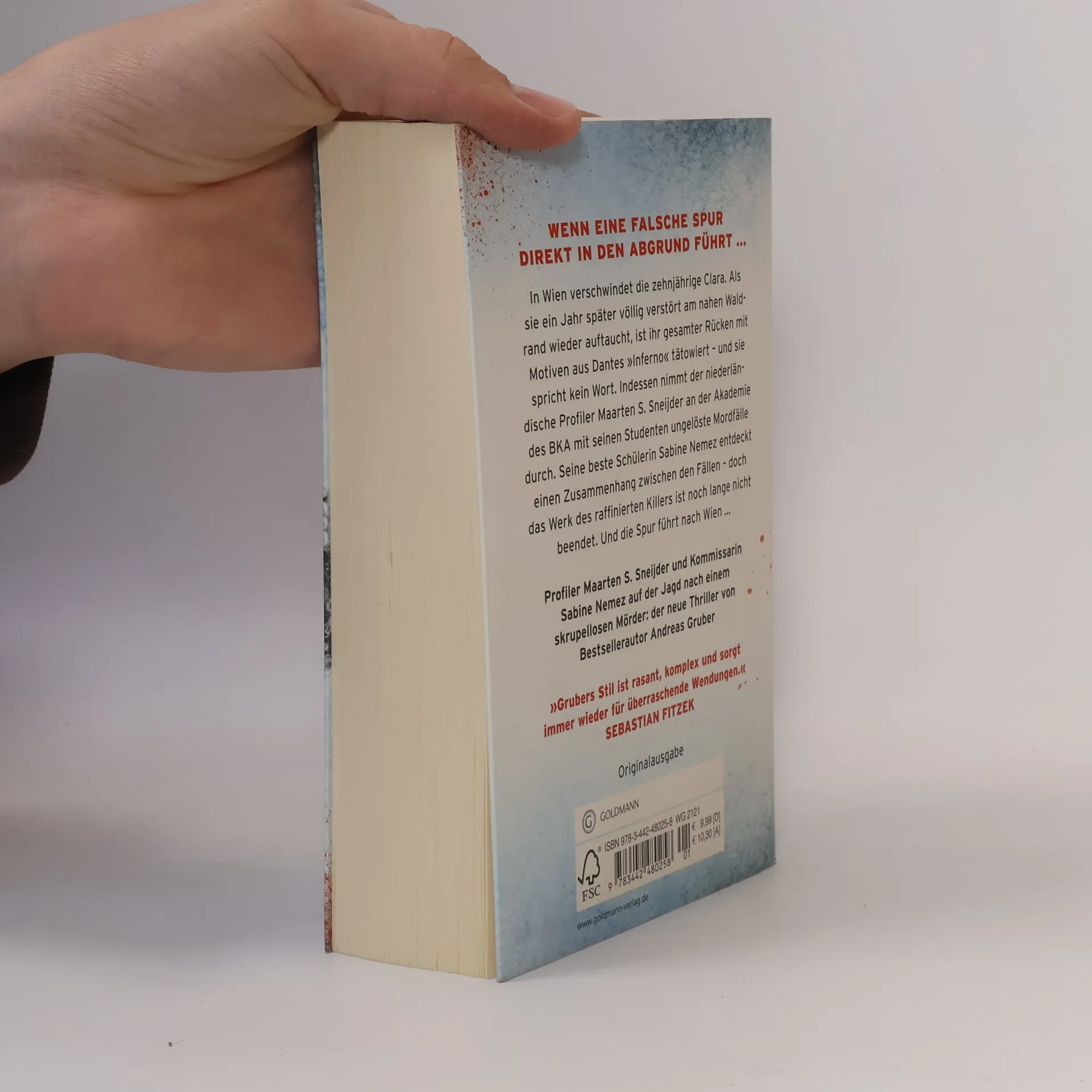 Sneijder und Nemez ermitteln wieder. In Wien verschwindet die zehnjährige Clara. Ein Jahr später taucht sie völlig verstört am nahen Waldrand wieder auf. Ihr gesamter Rücken ist mit Motiven aus Dantes „Inferno“ tätowiert – und sie spricht kein Wort. Indessen nimmt der niederländische Profiler Maarten S. Sneijder an der Akademie des BKA für hochbegabten Nachwuchs mit seinen Studenten ungelöste Mordfälle durch. Seine beste Schülerin Sabine Nemez entdeckt einen Zusammenhang zwischen mehreren Fällen – aber das Werk des raffinierten Killers ist noch lange nicht beendet. Seine Spur führt nach Wien – wo Clara die einzige ist, die den Mörder je zu Gesicht bekommen hat … Der zweite Fall für Sneijder und Nemez.