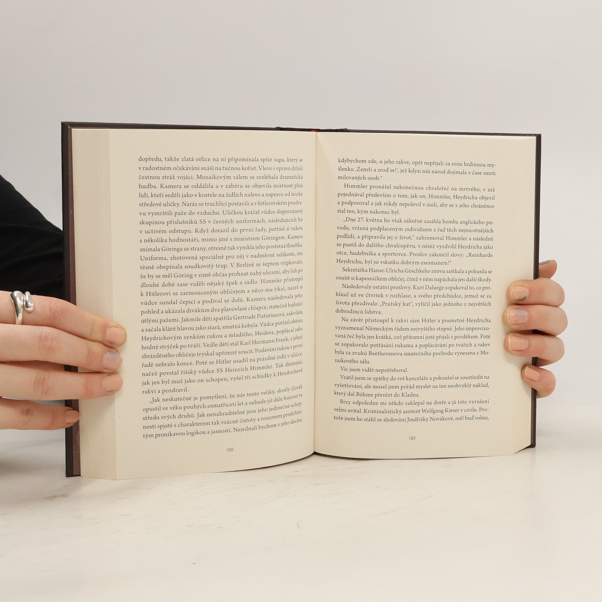 Praha, květen 1942: na Reinharda Heydricha, obávaného zastupujícího říšského protektora Čech a Moravy, byl spáchán atentát, jehož následkům „pražský kat“ o osm dní později podlehne. Zatímco nacistické vedení plánuje krvavou odplatu, vyšetřováním útoku je pověřen komisař gestapa Heinz Pannwitz. Jeho bezohlední soupeři z vlastních řad, zejména brutální esesman Böhme, ho svými nemilosrdnými metodami stále více tlačí, aby případ co nejrychleji vyřešil a uchránil tak tisíce lidí před hrozícím terorem. Každý krok zavádí vyšetřovatele hlouběji do odlidštěných mechanismů nacistické vlády – a jeho samotného dohání až na pokraj ztráty lidskosti.Román čerpá ze vzpomínek skutečné historické osoby komisaře Heinze Pannwitze a nabízí neotřelý pohled na období heydrichiády z perspektivy nacistických aktérů. Odkrývá pohnutky, které je mohly vést k vyhlazení Lidic a páchání dalších zvěrstev, a nutně se dotýká otázky viny.