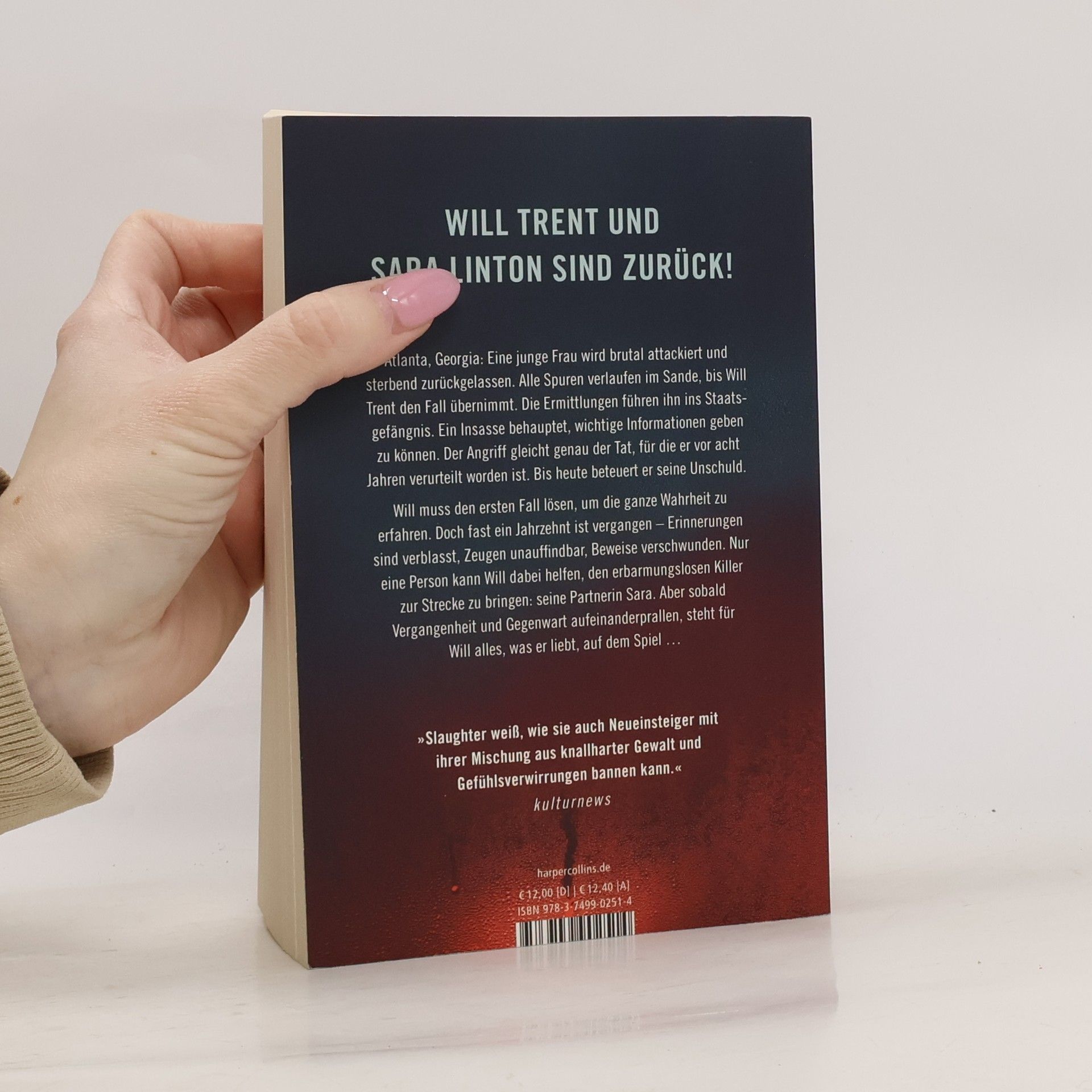 Der neue Fall für Will Trent und Sara Linton! Atlanta, Georgia: Eine junge Frau wird brutal attackiert und sterbend zurückgelassen. Alle Spuren verlaufen im Sande, bis Will Trent den Fall übernimmt. Die Ermittlungen führen ihn ins Staatsgefängnis. Ein Insasse behauptet, wichtige Informationen geben zu können. Der Angriff gleicht genau der Tat, für die er vor acht Jahren verurteilt worden ist. Bis heute beteuert er seine Unschuld. Will muss den ersten Fall lösen, um die ganze Wahrheit zu erfahren. Doch fast ein Jahrzehnt ist vergangen – Erinnerungen sind verblasst, Zeugen unauffindbar, Beweise verschwunden. Nur eine Person kann Will dabei helfen, den erbarmungslosen Killer zur Strecke zu bringen: seine Partnerin Sara. Aber sobald Vergangenheit und Gegenwart aufeinanderprallen, steht für Will alles, was er liebt, auf dem Spiel … »Jeder neue Thriller von Karin Slaughter ist ein Anlass zum Feiern!«Kathy Reichs »Slaughter weiß, wie sie auch Neueinsteiger mit ihrer Mischung aus knallharter Gewalt und Gefühlsverwirrungen bannen kann. Zudem blitzt immer wieder ihr unschlagbar trockener Humor auf, mit dem sie die expliziten Horrorszenarien der gekonnt hochdrehenden Thriller entschärft: ein albernes Codewort etwa, eine romantische Überraschung in einer Big-Mac-Schachtel oder die wirklich abgebrühteste Bestattung aller Zeiten.« kulturnews »Spannend!« Mein TV & Ich, 08.07.2021