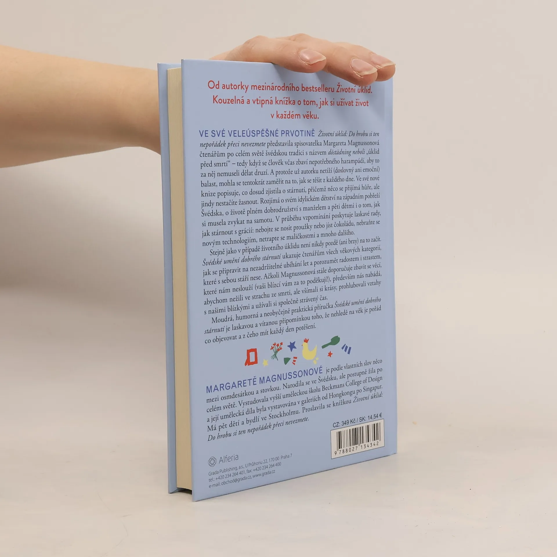 Moudré, vtipné a nanejvýše praktické Švédské umění dobrého stárnutí je citlivou, jemnou a vítanou připomínkou toho, že bez ohledu na náš věk jsou před námi vždy nové, neočekávané a fascinující objevy a zážitky, kterými můžeme dle libosti zaplnit každý další den. Švédské umění dobrého stárnutí nám ukazuje, jak se připravit na proces stárnutí a pomáhá nám pochopit radosti i strasti, které může toto období přinést. Hlavním poselství je mezi řádky myšlenka, že bychom se měli méně obávat stárnutí i představy smrti. Autorčin nový titul volně navazuje na Životní úklid a začíná tam, kde právě první kniha Magnussonové končí. Nezatížení fyzickými ani emocionálními břemeny a zavazadly se tak spolu s ní můžete v její druhé knize snáze začít soustředit na to, jak prožít každý další den smysluplně, užít a vychutnat si ho. Ve nové knize předkládá čtenářům své objevy a rady o stárnutí - některé těžko akceptovatelné, ale mnohé daleko spíše až nečekaně úžasné.
