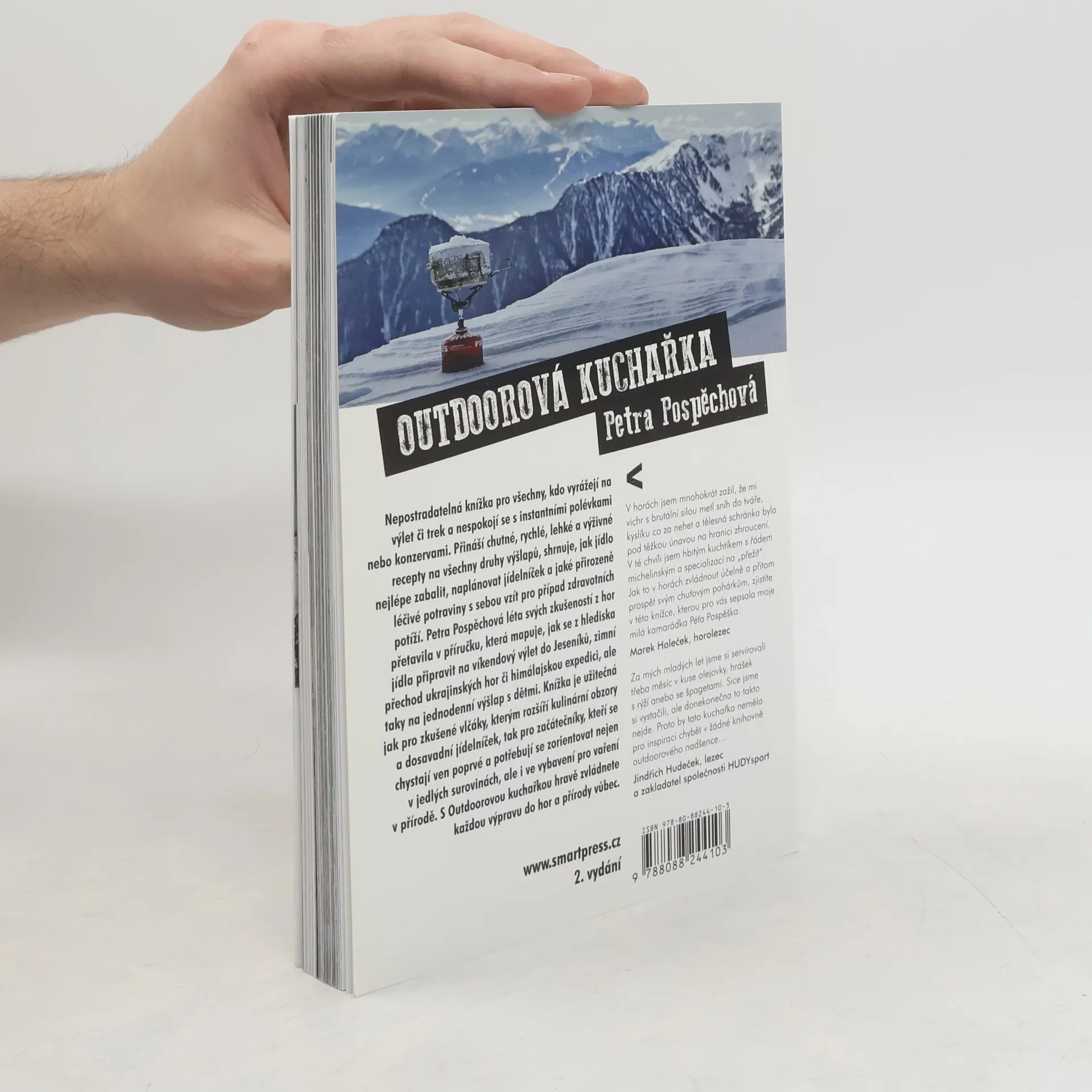 Nepostradatelná kniha pro všechny, kteří vyrážejí na trek či výlet a nespokojí se s instantními polévkami, konzervami nebo smažákem z restaurace. Přináší chutné a výživné recepty na všechny druhy výšlapů. Jak jídlo efektivně zabalit? Jak si naplánovat jídelníček? Jak využít přirozených léčivých potravin pro případ zdravotních potíží? Autorka z vlastních zkušeností připravuje unikátní publikaci, která zmapuje, jak se po všech kulinárních stránkách připravit např. na víkendový výšlap v Jeseníkách, zimní přechod ukrajinských hor či himalájskou expedici, ale také na výpravu s dětmi, splav vodních toků nebo cyklistickou dovolenou. Redaktorka Petra Pospěchová je autorkou knihy o kulinárních tradicích Česka Regionální kuchařka – Všechny chutě Čech, Moravy a Slezska.