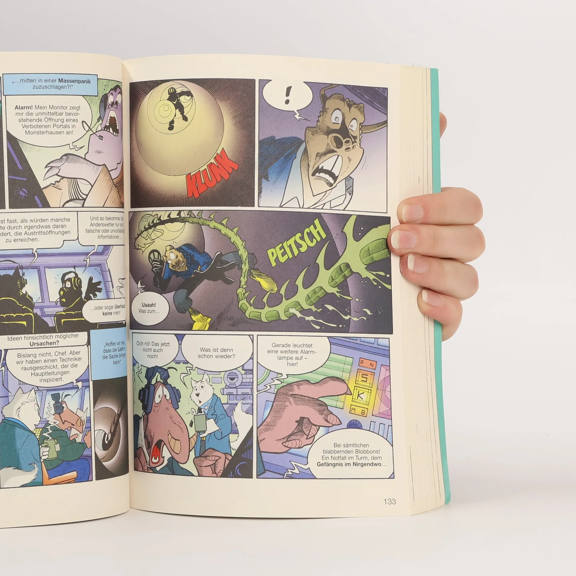 Wird Goofwolf irgendwann doch noch ein vollwertiger Begleiter, so richtig mit Lizenz und abgeschlossenem Examen? Zweifel waren und sind da angesichts seiner junwerwölfischen Gelassenhei und seinem Hang zur Hauruck-Aktion samt unweigerlich folgender Komplikation stets angebracht. Diese und weitere gruselig-gute Geschichten gibt es im neuen Lustigen Taschenbuch Premium Nr. 19!