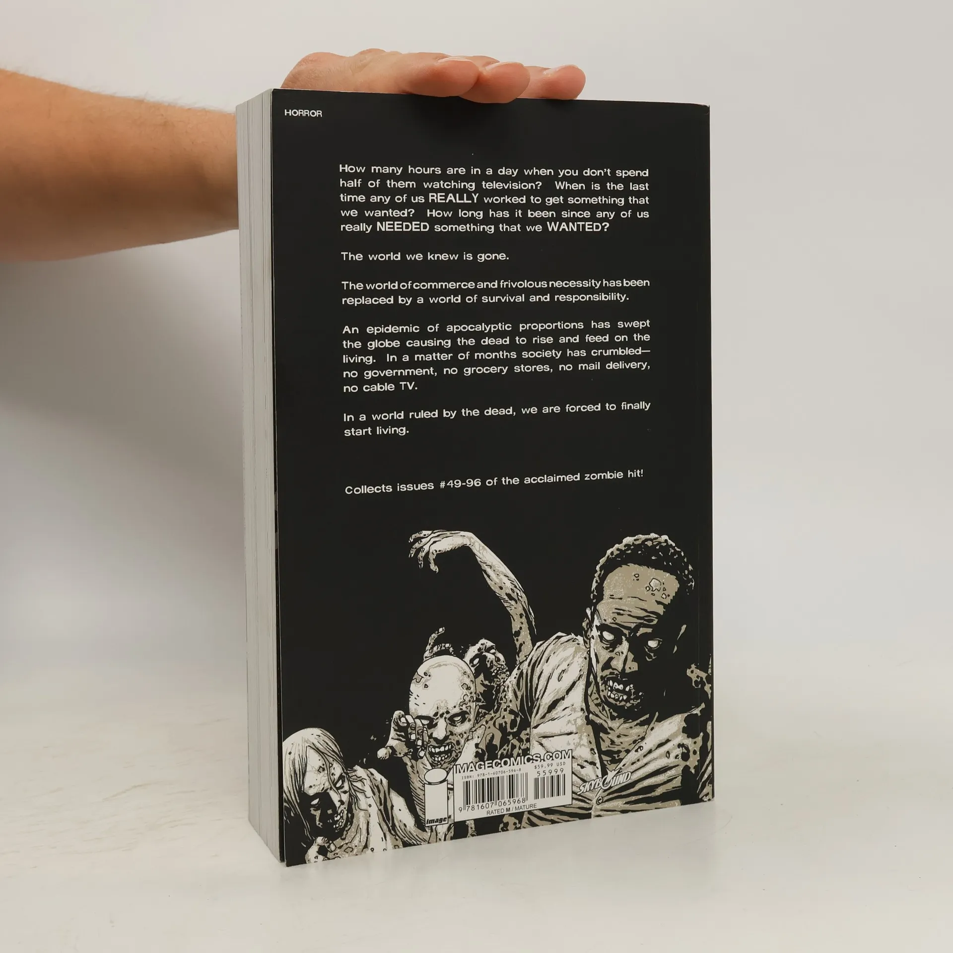 Returning with the second eight volumes of the fan-favorite, New York Times bestseller series, The Walking Dead, collected into one massive paperback collection!This is the perfect collection for any fan of the Emmy Award-winning television series on AMC: over one-thousand pages chronicling the next chapter of Robert Kirkman's Eisner Award-winning continuing story of survival horror - beginning with Rick Grimes' struggle to survive after the prison raid, to the group's finding short solace in The Community, and the devastation that follows. In a world ruled by the dead, we are finally forced to finally start living. Collects The Walking Dead #49-96.