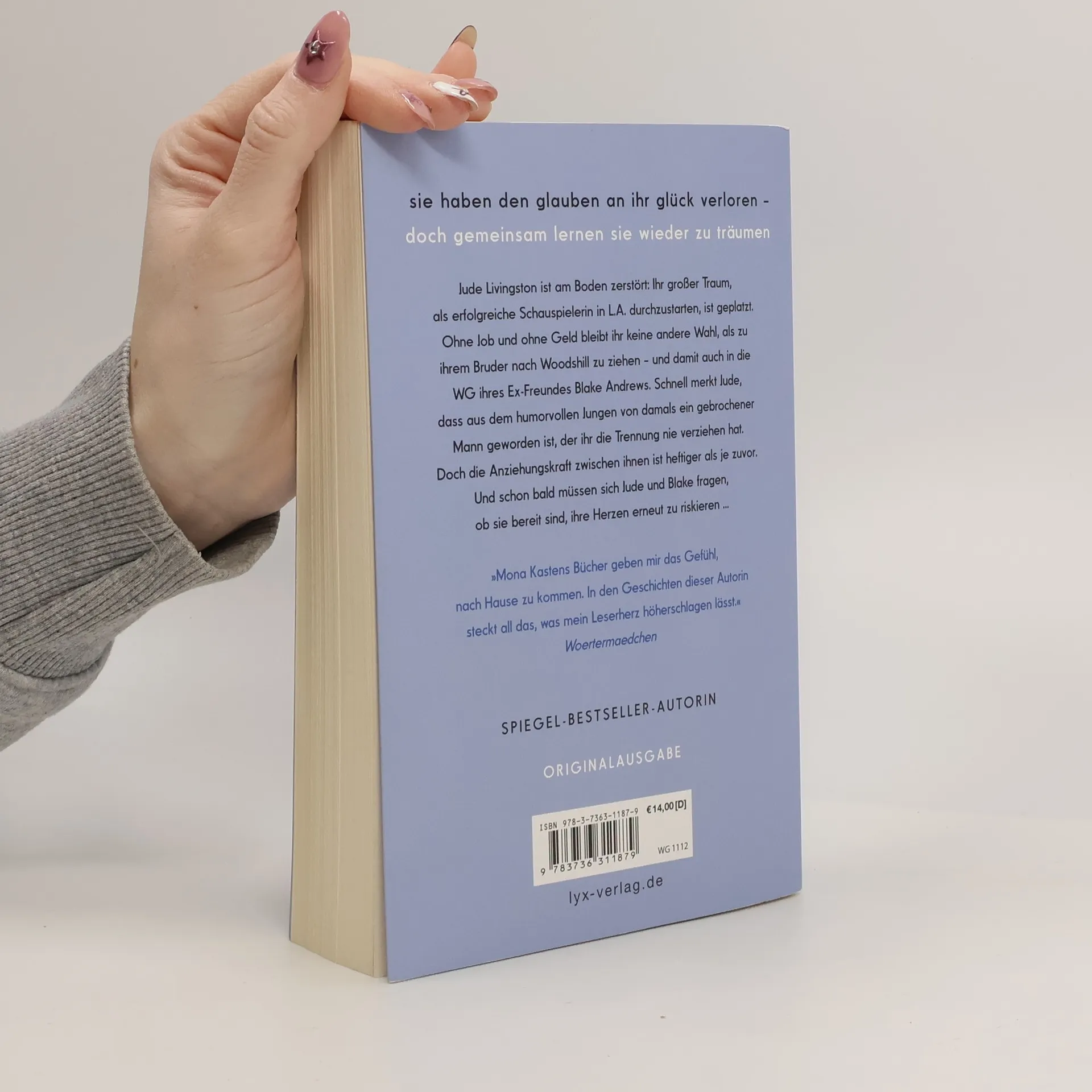Sie haben den Glauben an ihr Glück verloren - doch gemeinsam lernen sie wieder zu träumen Jude Livingston ist am Boden zerstört: Ihr großer Traum, als erfolgreiche Schauspielerin in L. A. durchzustarten, ist geplatzt. Ohne Job und ohne Geld bleibt ihr keine andere Wahl, als zu ihrem Bruder nach Woodshill zu ziehen - und damit auch in die WG ihres Ex-Freundes Blake Andrews. Schnell merkt Jude, dass aus dem humorvollen Jungen von damals ein gebrochener Mann geworden ist, der ihr die Trennung nie verziehen hat. Doch die Anziehungskraft zwischen ihnen ist heftiger als je zuvor. Und schon bald müssen sich Jude und Blake fragen, ob sie bereit sind, ihre Herzen erneut zu riskieren ... „Mona Kastens Bücher geben mir das Gefühl, nach Hause zu kommen. In den Geschichten dieser Autorin steckt all das, was mein Leserherz höherschlagen lässt.“ WOERTERMAEDCHEN „Lache, weine und verliebe dich. Mona Kasten hat ein Buch geschrieben, das man nicht aus der Hand legen kann!“ ANNA TODD über BEGIN AGAIN Band 5 der Erfolgsreihe von Platz-1-SPIEGEL-Bestseller-Autorin Mona Kasten