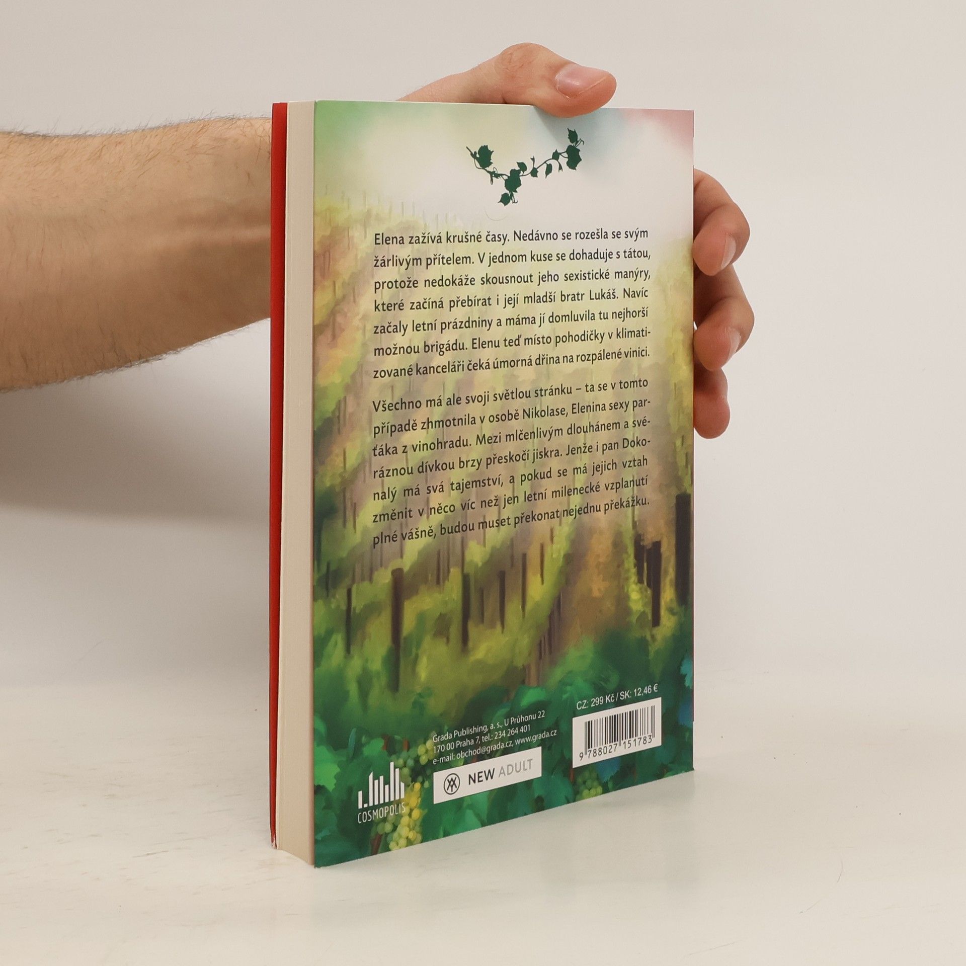 Elena zažívá krušné časy. Nedávno se rozešla se svým žárlivým přítelem. V jednom kuse se dohaduje s tátou, protože nedokáže skousnout jeho sexistické manýry, které začíná přebírat i její mladší bratr Lukáš. Navíc začaly letní prázdniny a máma jí domluvila tu nejhorší možnou brigádu. Elenu tak teď místo pohodičky v klimatizované kanceláři čeká úmorná dřina na rozpálené vinici.Všechno má ale svoji světlou stránku – ta se v tomto případě zhmotnila v osobě Nikolase, Elenina sexy parťáka z vinohradu. Mezi mlčenlivým dlouhánem a svéráznou dívkou brzy přeskočí jiskra. Jenže i pan Dokonalý má svá tajemství a pokud se má jejich vztah změnit v něco víc než jen letní milenecké vzplanutí plné vášně, budou muset překonat nejednu překážku.