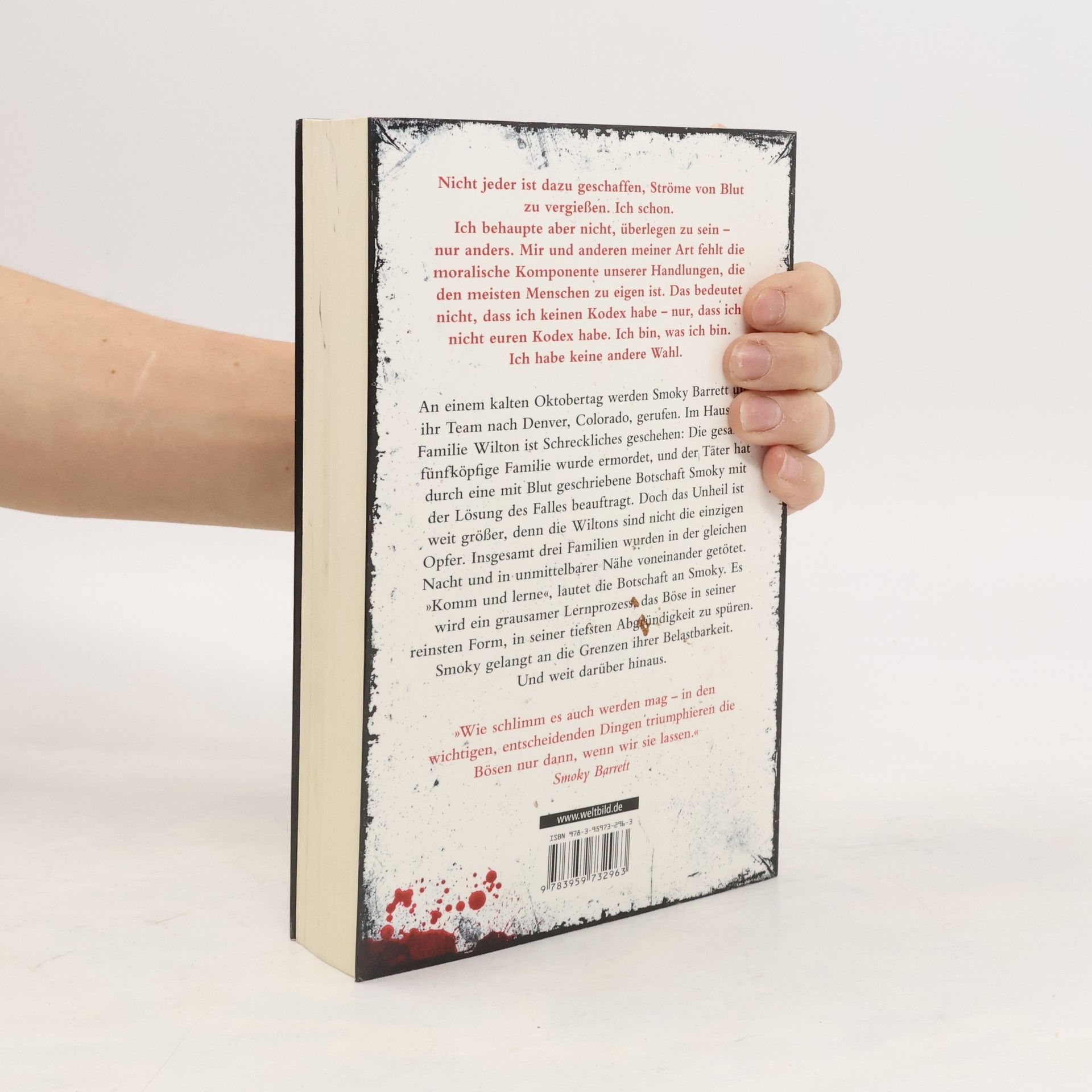 Smoky Barrett ist zurück An einem kalten Oktobertag werden Smoky Barrett und ihr Team nach Denver, Colorado, gerufen. Im Haus der Familie Wilton ist Schreckliches geschehen: Die gesamte fünfköpfige Familie wurde ermordet, und der Täter hat durch eine mit Blut geschriebene Botschaft Smoky mit der Lösung des Falles beauftragt. Doch das Unheil ist weit größer, denn die Wiltons sind nicht die einzigen Opfer. Insgesamt drei Familien wurden in der gleichen Nacht und in unmittelbarer Nähe voneinander getötet. „Komm und lerne“, lautet die Botschaft an Smoky. Es wird ein grausamer Lernprozess, das Böse in seiner reinsten Form, in seiner tiefsten Abgründigkeit zu spüren. Smoky gelangt an die Grenzen ihrer Belastbarkeit. Und weit darüber hinaus. Nach Ausgelöscht und Das Böse in uns der neue Psychothriller aus der Smoky Barrett-Reihe von Cody Mcfadyen - Hochspannung mit Gänsehaut-Potenzial!.