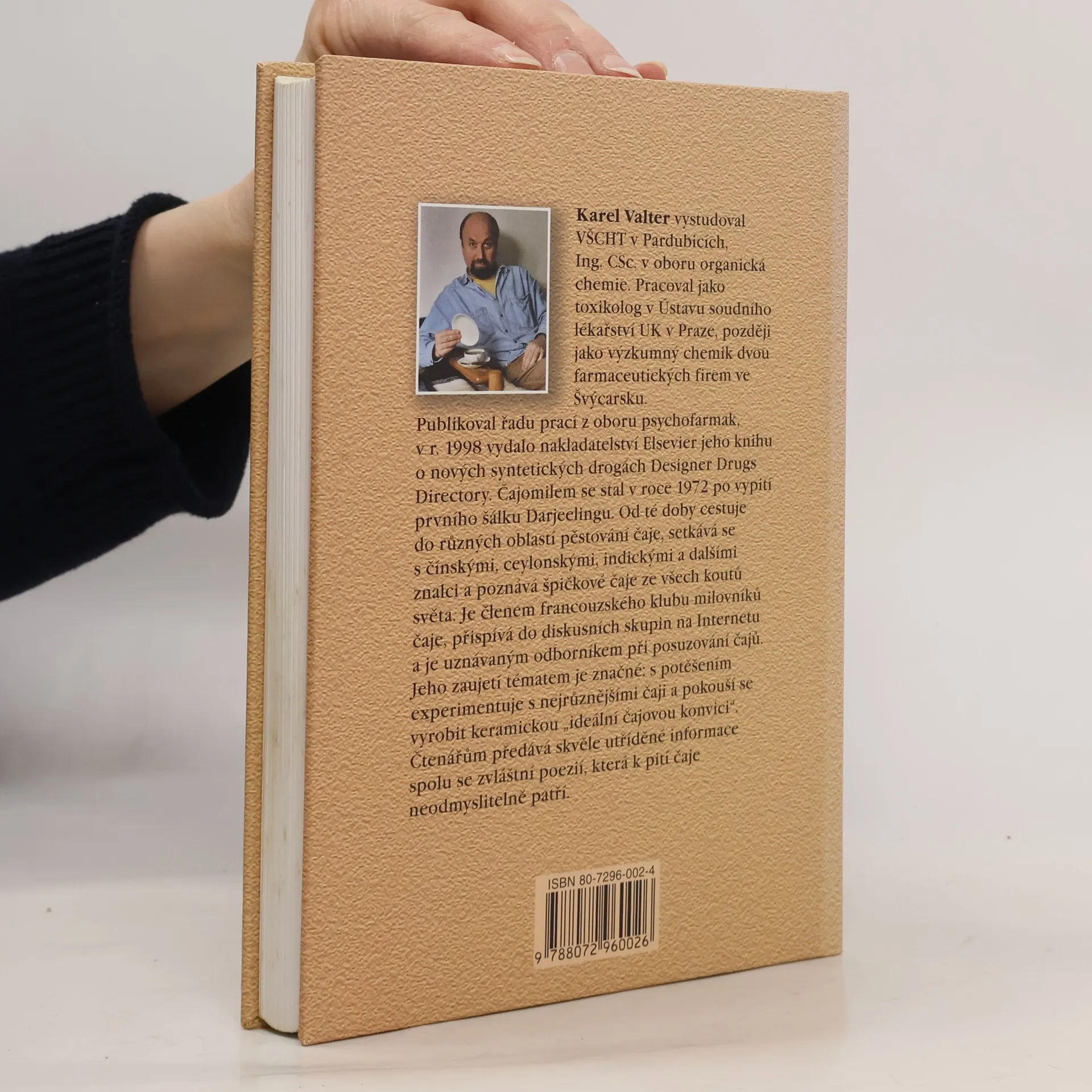 2. aktualiz. vyd. Karel Valter vystudoval VŠCHT v Pardubicích, Ing. CSc. v oboru organická chemie. Pracoval jako toxikolog v Ústavu soudního lékařství UK v Praze, později jako výzkumný chemik dvou farmaceutických firem ve Švýcarsku. Publikoval řadu prací z oboru psychofarmak, v r. 1998 vydalo nakladatelství Elsevier jeho knihu o nových syntetických drogách Designer Drugs Directory. Čajomilem se stal v roce 1972 po vypití prvního šálku Darjeelingu. Od té doby cestuje do různých oblastí pěstování čaje, setkává se s čínskými, ceylonskými, indickými a dalšími znalci a poznává špičkové čaje ze všech koutů světa. Je členem francouzského klubu milovníků čaje, přispívá do diskusních skupin na Internetu a je uznávaným odborníkem při posuzování čajů. Jeho zaujetí tématem je značné: s potěšením experimentuje s nejrůznějšími čaji a pokouší se vyrobit keramickou „ideální čajovou konvici“. Čtenářům předává skvěle utříděné informace spolu se zvláštní poezií, která k pití čaje neodmyslitelně patří.