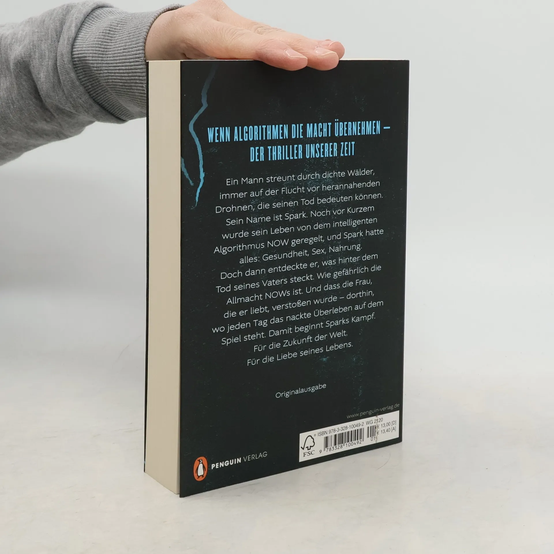 Ein Mann streunt durch dichte Wälder, immer auf der Flucht vor herannahenden Drohnen, die seinen Tod bedeuten können. Sein Name ist Spark. Noch vor Kurzem wurde sein Leben von dem intelligenten Algorithmus NOW geregelt, und Spark hatte alles: Gesundheit, Sex, Nahrung. Doch dann entdeckte er, was hinter dem Tod seines Vaters steckt. Wie gefährlich die Allmacht NOWs ist. Und dass die Frau, die er liebt, verstoßen wurde - dorthin, wo jeden Tag das nackte Überleben auf dem Spiel steht. Damit beginnt Sparks Kampf. Für die Zukunft der Welt. Für die Liebe seines Lebens.