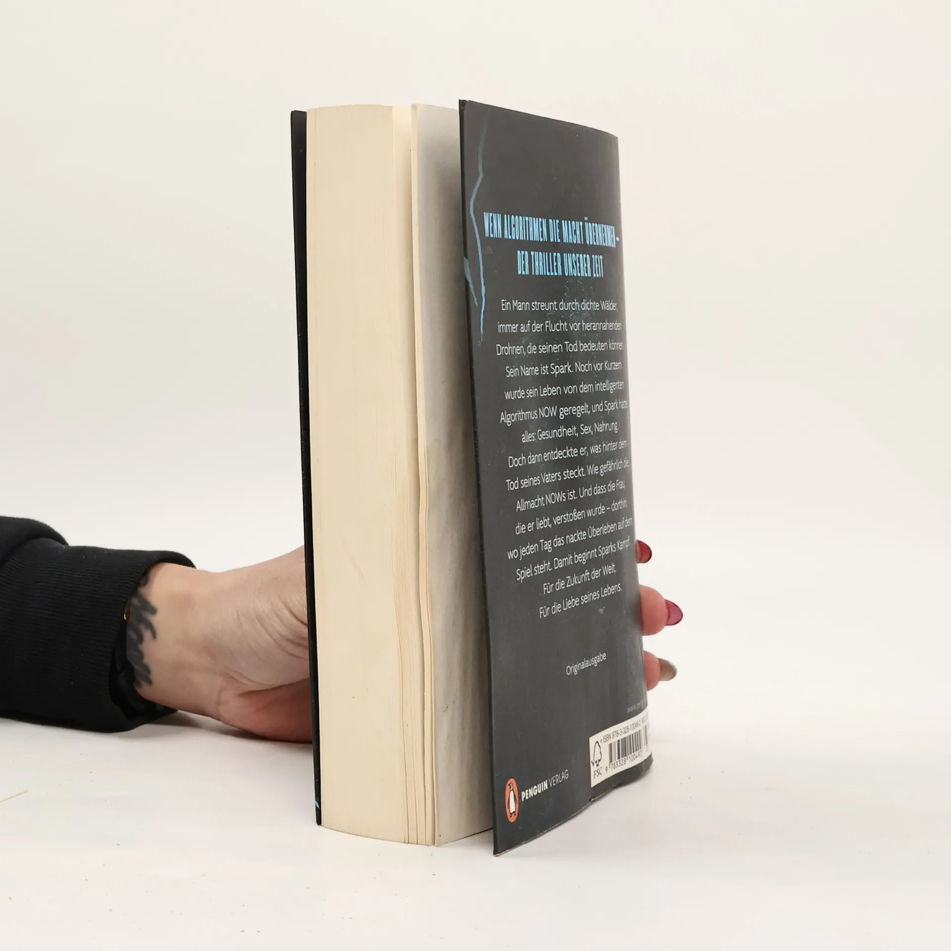 Ein Mann streunt durch dichte Wälder, immer auf der Flucht vor herannahenden Drohnen, die seinen Tod bedeuten können. Sein Name ist Spark. Noch vor Kurzem wurde sein Leben von dem intelligenten Algorithmus NOW geregelt, und Spark hatte alles: Gesundheit, Sex, Nahrung. Doch dann entdeckte er, was hinter dem Tod seines Vaters steckt. Wie gefährlich die Allmacht NOWs ist. Und dass die Frau, die er liebt, verstoßen wurde - dorthin, wo jeden Tag das nackte Überleben auf dem Spiel steht. Damit beginnt Sparks Kampf. Für die Zukunft der Welt. Für die Liebe seines Lebens.