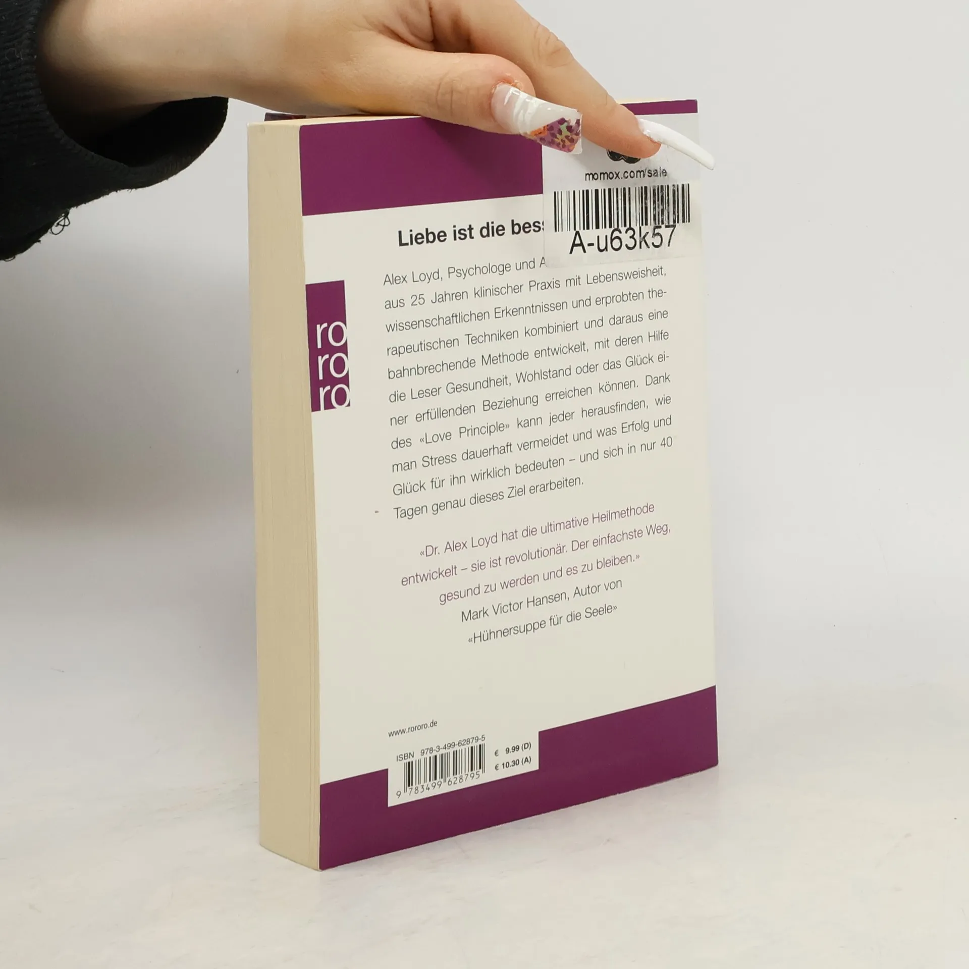 Der Erfolgsmethode für ein rundum erfülltes LebenLiebe ist die bessere Medizin! Alex Loyd, Psychologe und Arzt, hat seine Erfahrung aus 25 Jahren klinischer Praxis mit Lebensweisheit, wissenschaftlichen Erkenntnissen und erprobten therapeutischen Techniken kombiniert und daraus eine bahnbrechende Methode entwickelt, mit deren Hilfe die Leser Gesundheit, Wohlstand oder das Glück einer erfüllenden Beziehung erreichen können. Loyd ist überzeugt: Die Liebe ist das stärkste Heilmittel gegen Krankheiten und die einzig wahre Grundlage für eine glückliche Lebensveränderung. Dank des «Love Principle» kann jeder, der diese Anleitung zum Lieben richtig anwendet, herausfinden, wie man Stress dauerhaft vermeidet und was Erfolg und Glück für ihn wirklich bedeuten – und sich in nur 40 Tagen genau dieses persönliche Ziel erarbeiten. «Dr. Alex Loyd hat die ultimative Heilmethode entwickelt – sie ist revolutionär. Der einfachste Weg, gesund zu werden und es zu bleiben.» Mark Victor Hansen, Autor von «Hühnersuppe für die Seele»