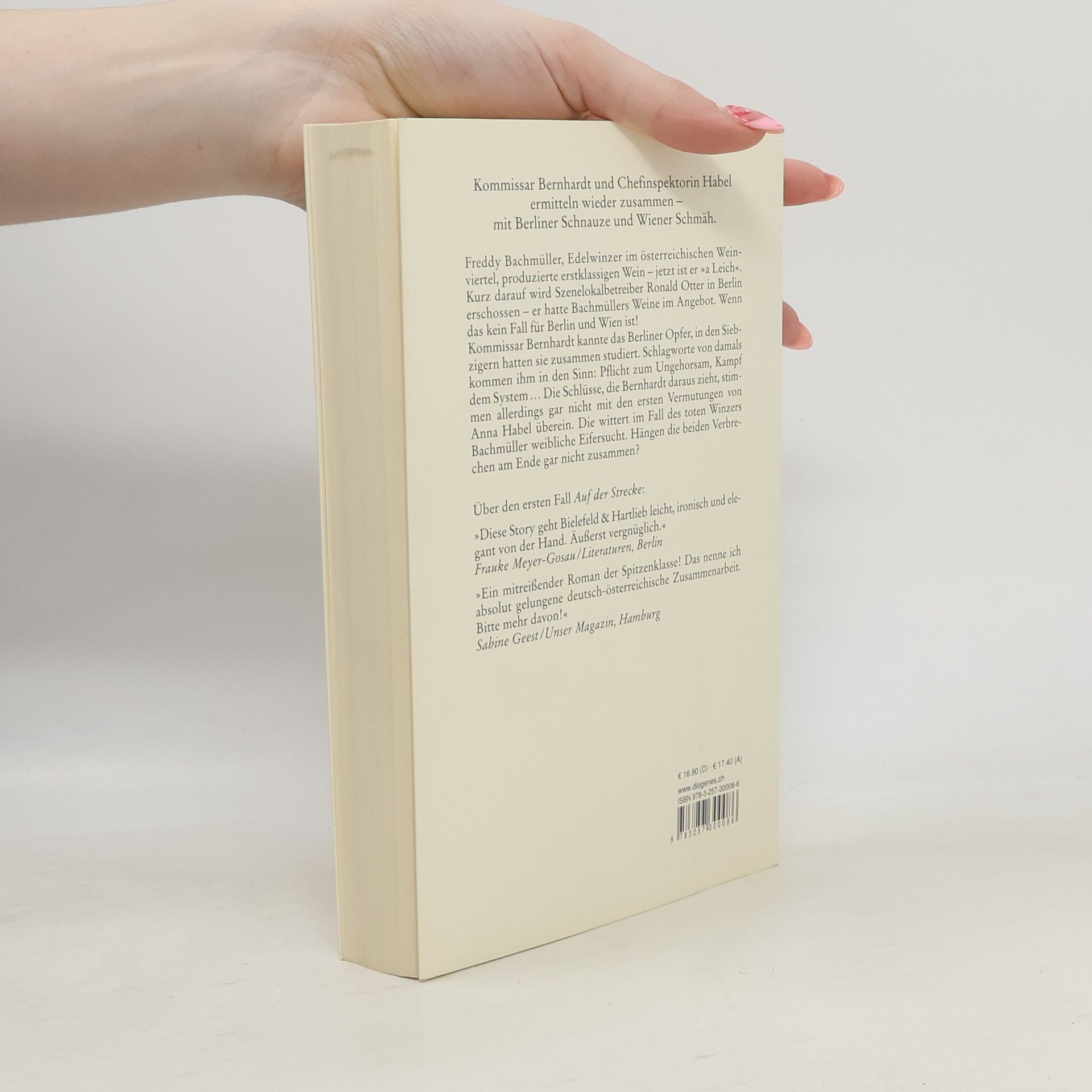 Freddy Bachmüller, Edelwinzer im österreichischen Weinviertel, produzierte erstklassigen Wein – jetzt ist er »a Leich«. Kurz darauf wird Szenelokalbetreiber Ronald Otter in Berlin erschossen – er hatte Bachmüllers Weine im Angebot. Wenn das kein Fall für Berlin und Wien ist! Kommissar Bernhardt und Chefinspektorin Habel ermitteln wieder zusammen: Sie streiten, frotzeln und schäkern, was das Zeug hält – rein dienstlich natürlich. Bernhardt kannte das Berliner Opfer, in den Siebzigern hatten sie zusammen studiert. Schlagworte von damals kommen ihm in den Sinn: Pflicht zum Ungehorsam, Kampf dem System … Die Schlüsse, die er daraus zieht, stimmen allerdings nicht mit den ersten Vermutungen von Anna Habel überein. Die wittert im Fall des toten Winzers Bachmüller weibliche Eifersucht.