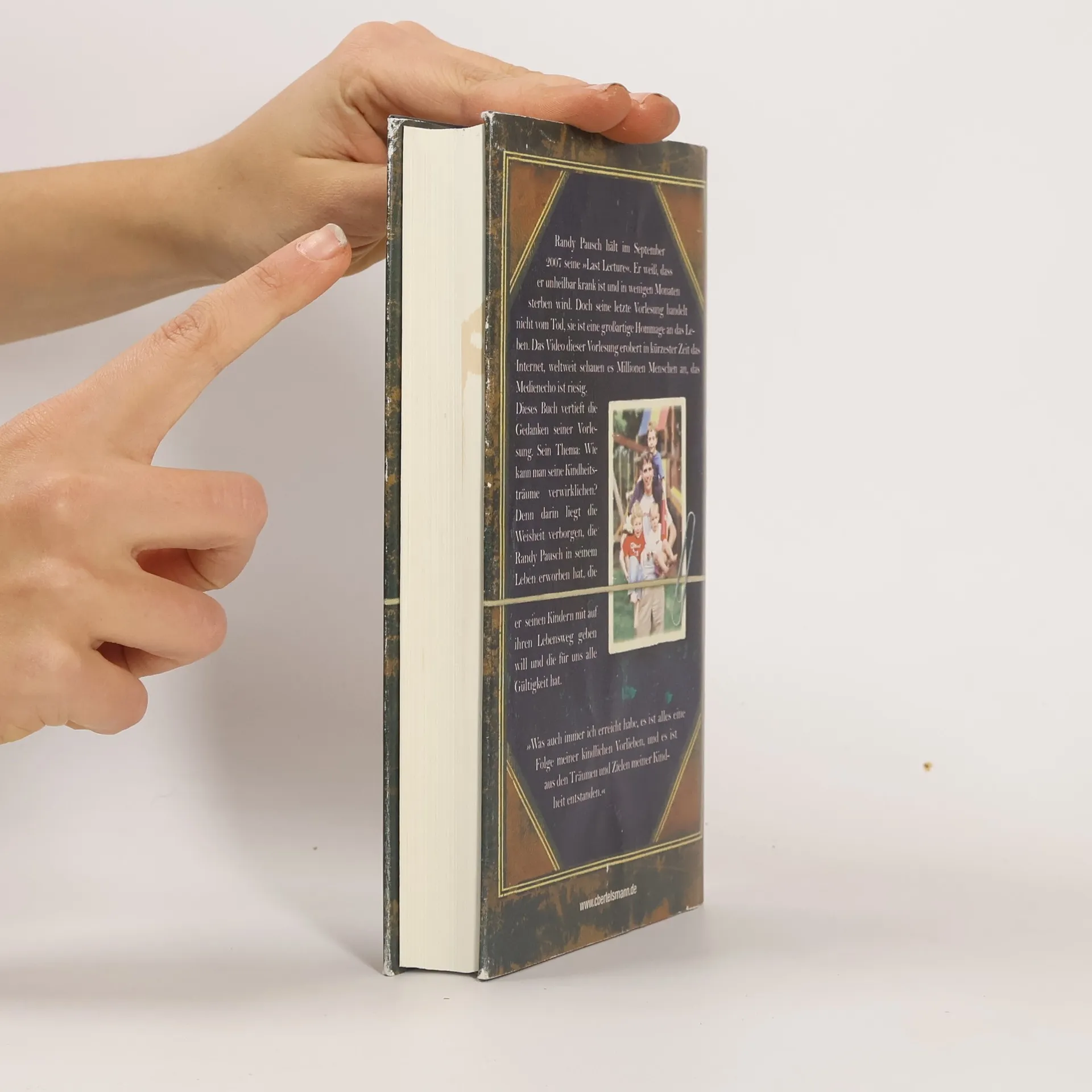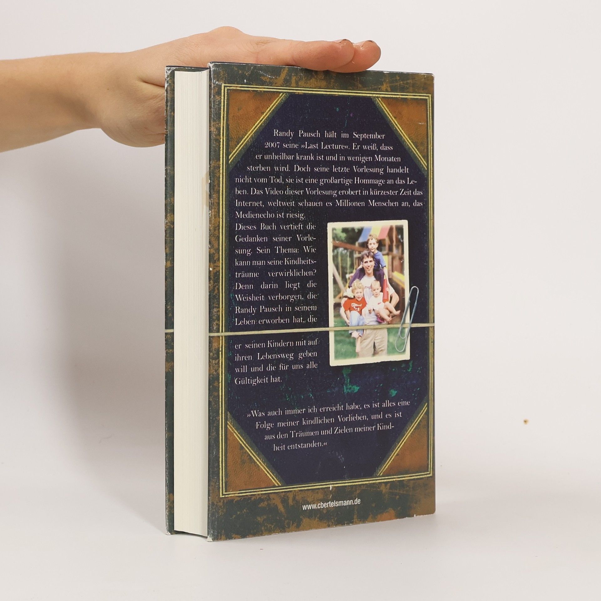 Mit 47 Jahren hält Randy Pausch, Informatikprofessor an der Carnegie Mellon University in Pittsburgh, am 18. September 2007 seine Abschiedsvorlesung. Das Thema: Seine Kindheitsträume und wie er sie verwirklicht hat. Der Anlass: Pausch ist an Krebs erkrankt und hat nur noch wenige Monate zu leben. An diesem Tag lauschen einige hundert Zuhörer gebannt seinen Worten, kurze Zeit später kennen Millionen Menschen auf der ganzen Welt ihn und seine bewegende Rede. Das vorliegende Buch, für das die „Last Lecture“ und ihre gewaltige Medienresonanz den Anstoß gegeben hat, ist in langen Gesprächen mit dem Journalisten Jeffrey Zaslow entstanden. Die Lebenseinsichten Randy Pauschs sind in ihm mit seiner persönlichen Lebensgeschichte verwoben.