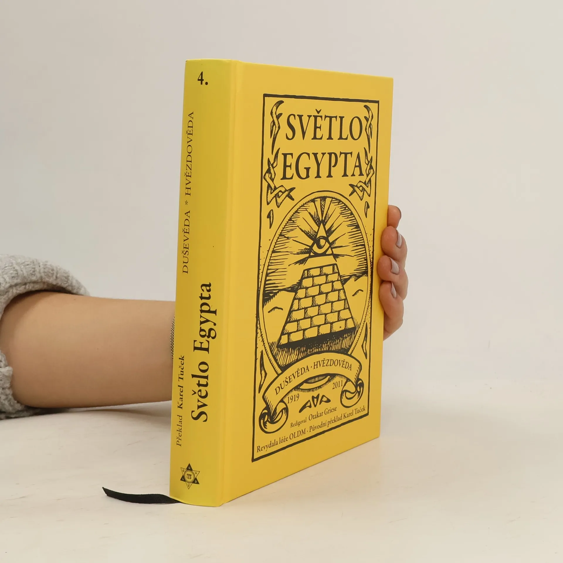 Kniha Světlo Egypta pochází ze zlaté éry prvorepublikového českého hermetismu. Karel Tuček ji překládá a věnuje okultistovi Otakaru Griesemu. Jako taková v sobě nezapře vše, po čem mohou knihy dnešní, esoterní, jen toužit - hluboké filosofické myšlenky podané však ve větách jasných a přístupných k chápání. Kniha je rozdělena na dvě témata DUŠEVĚDU a HVĚZDOVĚDU a obě vyčerpává do krajnosti. Slovy v díle podanými: Ona obrací se k slunečnímu světlu v chomáčích nepatrného lišejníku, uchovává zářnou bělost lotosového květu a vyzařuje z růže jako nádherná její vůně. Jest motýlem, vylétnuvším z kukly, zpívajícím slavíkem v lese. Jde od jednoho stupně pokroku ke druhému, od nových zrození k novým smrtím; každé hodiny musí zemříti, také však znovu oživnouti, stále u díla a na stezce plné překážek a námahy, až naposled procitne na zemi jako hmotný tvar, utvořený z pozemského prachu. Jako tvor z masa a krve, ale nyní jako člověk. Dosáhla vysokého vědomého stupně, dosáhla lidství, vrcholu to pozemské inkarnace.