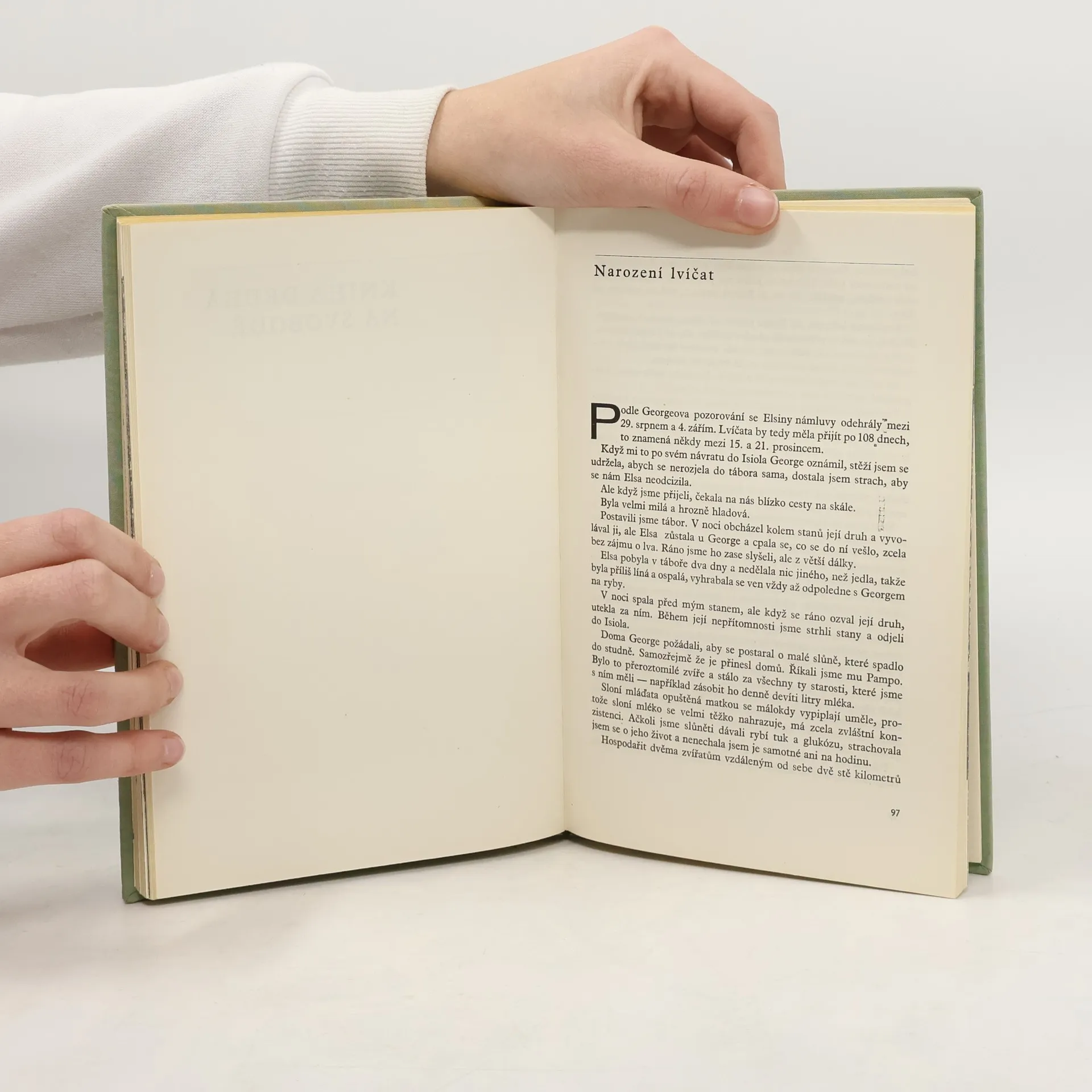 Nesmrtelné vyprávění o neobyčejném přátelství ženy a lvice, zachycuje životní osudy roztomilé, hravé Elsy – jak byla odchována lidmi a jak se postupně dokázala vrátit do náruče rodné divočiny, najít si druha a stát se matkou tří mláďat. Příběh Elsy je silným čtenářským zážitkem a zároveň unikátní studií psychologie divokých zvířat, působivým důkazem jejich inteligence, sebeovládání a emočních schopností. Vyprávění o soužití člověka se zvířaty na farmě i v buši je prosycené nádhernými, veselými i smutnějšími zážitky.