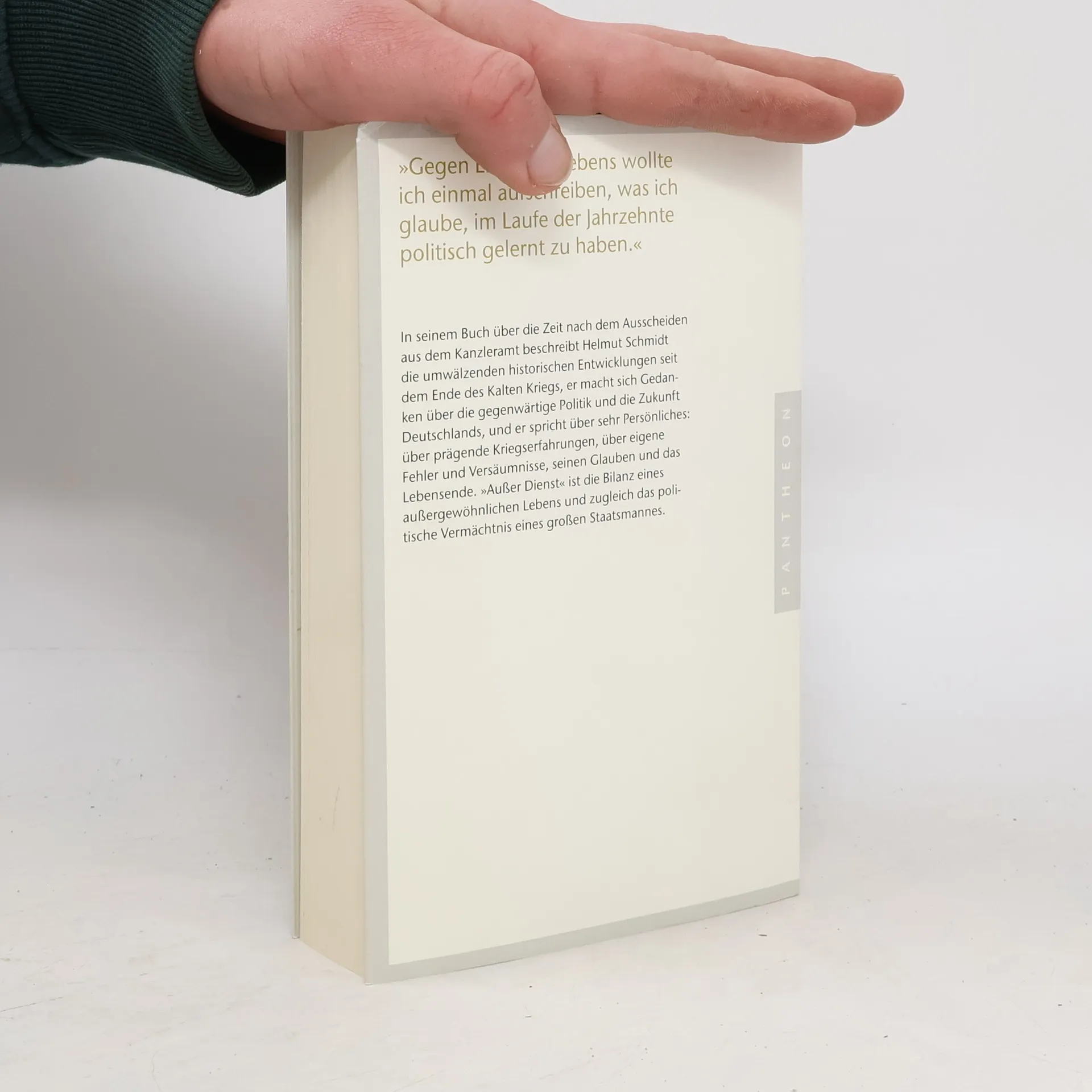 Einer der bekanntesten und beliebtesten Politiker und Publizisten zieht Bilanz In seinen Erinnerungen über die Zeit nach dem Ausscheiden aus dem Kanzleramt im Herbst 1982 beschreibt Helmut Schmidt die umwälzenden historischen Entwicklungen seit dem Ende des Kalten Kriegs, er macht sich Gedanken über die gegenwärtige Politik und die Zukunft Deutschlands, und er spricht über sehr Persönliches. „Außer Dienst“ ist Helmut Schmidts privatestes Buch – und zugleich sein politisches Vermächtnis.Helmut Schmidt zählt zu den großen Figuren der deutschen Politik, über die Parteigrenzen hinweg verkörpert er für viele Deutsche den idealen Staatsmann. Fünfundzwanzig Jahre nach dem Ende seiner Amtszeit als Bundeskanzler zieht er nun Bilanz und äußert sich gewohnt deutlich zu zentralen Fragen unserer Zeit. So geißelt er die globalen Verwerfungen des Raubtierkapitalismus und appelliert an die Moral der Eliten in unserem Land. Welchen Leitbildern soll man folgen? Kann man aus der Geschichte lernen? Wie erwirbt man politische Klugheit? Immer wieder kreisen die Gedanken des Autors um das schwierige Selbstverständnis der Deutschen, um ihre oft unheilvolle Rolle in der Geschichte und ihre Zukunft innerhalb der Europäischen Union. Eingestreut sind aber auch höchst private Reflexionen und Bekenntnisse.