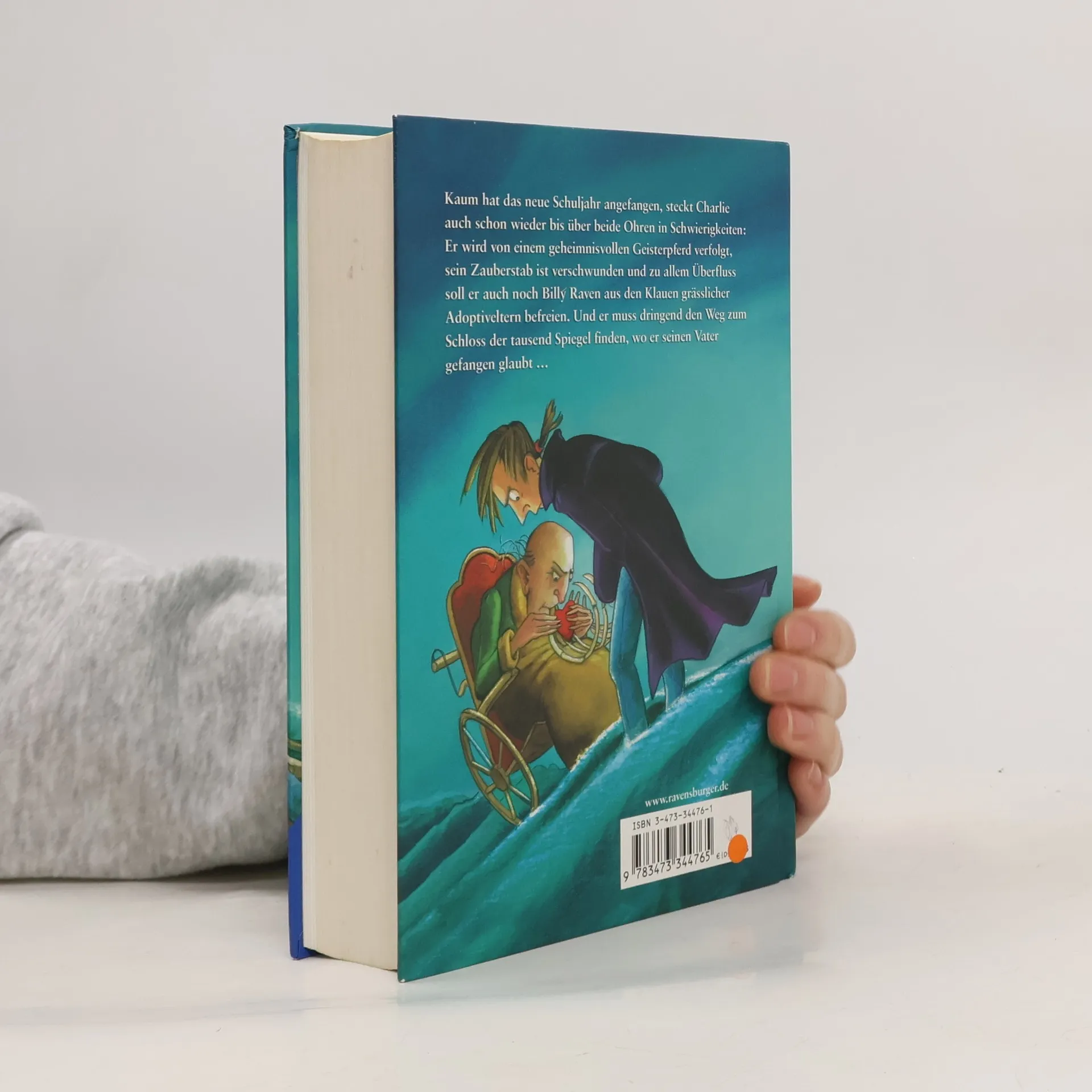 Kaum hat das neue Schuljahr angefangen, steckt Charlie auch schon wieder bis über beide Ohren in Schwierigkeiten: Erst wird er von einem geheimnisvollen Geisterpferd verfolgt, dann verschwindet sein Zauberstab und zu allem Überfluss soll er auch noch Billy Raven aus den Klauen grässlicher Adoptiveltern befreien. Und er muss dringend den Weg zum Schloss der tausend Spiegel finden, wo Billy etwas über seine Herkunft erfahren soll - und in dem Charlie seinen Vater gefangen glaubt ..