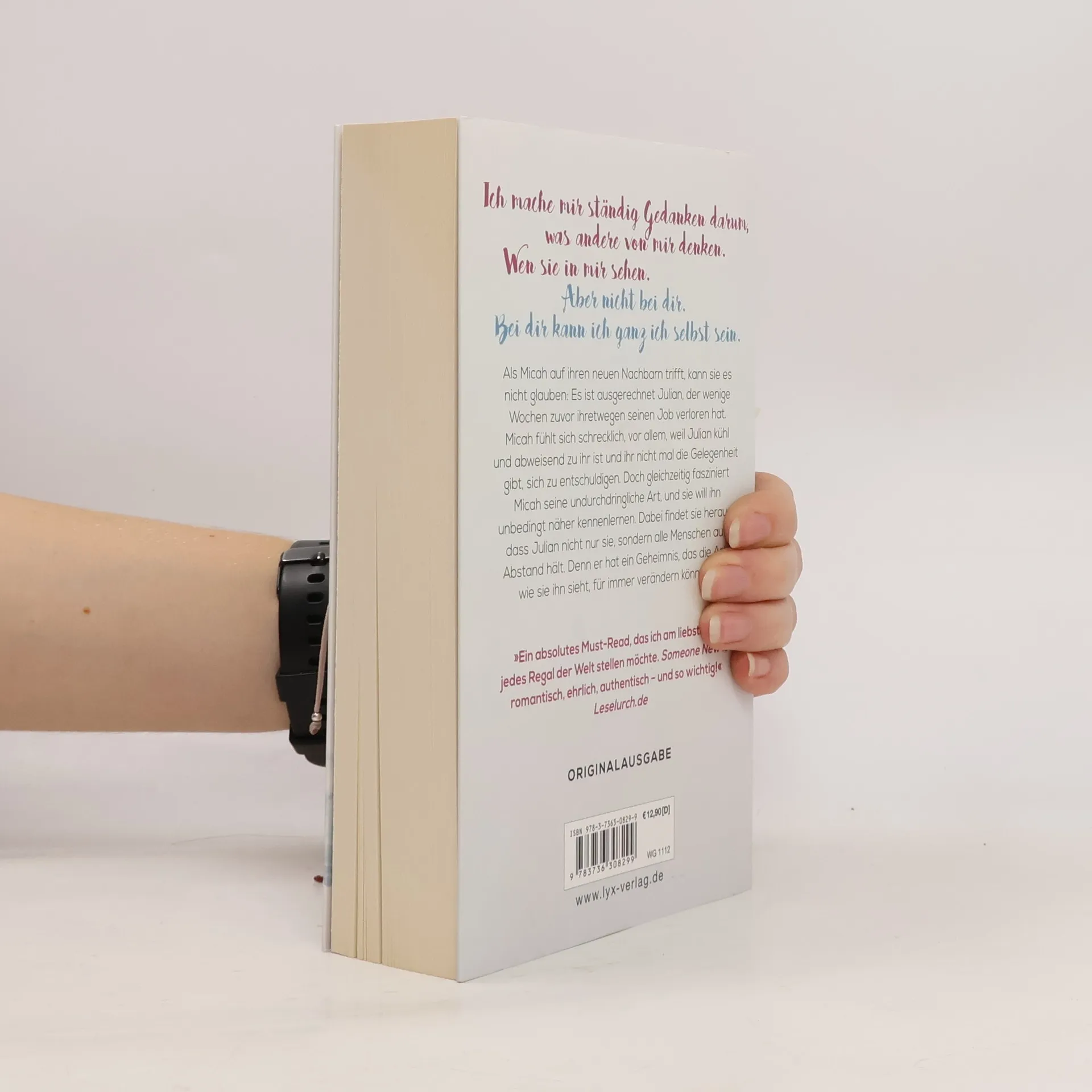 Ich mache mir ständig Gedanken darum, was andere Menschen von mir denken. Wen sie in mir sehen. Aber nicht bei dir. Bei dir kann ich ganz ich selbst sein. Als Micah auf ihren neuen Nachbarn trifft, kann sie es nicht glauben: Es ist ausgerechnet Julian, der wenige Wochen zuvor ihretwegen seinen Job verloren hat. Micah fühlt sich schrecklich, vor allem, weil Julian kühl und abweisend zu ihr ist und ihr nicht mal die Gelegenheit gibt, sich zu entschuldigen. Doch gleichzeitig fasziniert Micah seine undurchdringliche Art, und sie will ihn unbedingt näher kennenlernen. Dabei findet sie heraus, dass Julian nicht nur sie, sondern alle Menschen auf Abstand hält. Denn er hat ein Geheimnis, das die Art, wie sie ihn sieht, für immer verändern könnte ... „Ein absolutes Must-Read, das ich am liebsten in jedes Regal der Welt stellen möchte. Someone New ist romantisch, ehrlich, authentisch - und so wichtig!“ Leselurch Nach „Berühre mich. Nicht“ und „Verliere mich. Nicht.“ - der neue Roman von Platz-1-Spiegel-Bestseller-Autorin Laura Kneidl