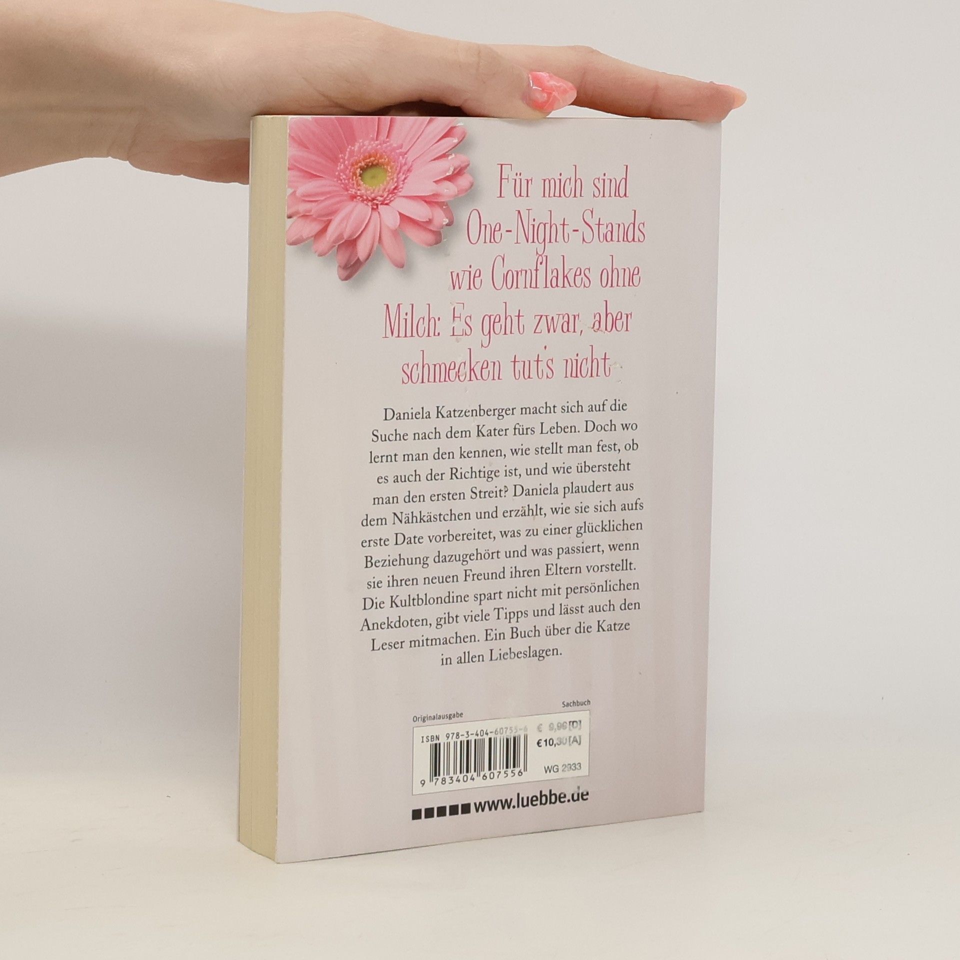 Daniela Katzenberger macht sich auf die Suche nach dem richtigen Kater fürs Leben. Doch wo lernt man den kennen, wie stellt man fest, ob es auch der Richtige ist, und wie übersteht man den ersten Streit? Daniela plaudert aus dem Nähkästchen und erzählt, wie sie sich aufs erste Date vorbereitet, was zu einer glücklichen Beziehung dazugehört und was passiert, wenn sie ihren neuen Freund ihren Eltern vorstellt. Die Kultblondine spart nicht mit persönlichen Anekdoten, gibt viele Tipps und lässt auch den Leser mitmachen. Ein Buch über die Katze in allen Liebeslagen.