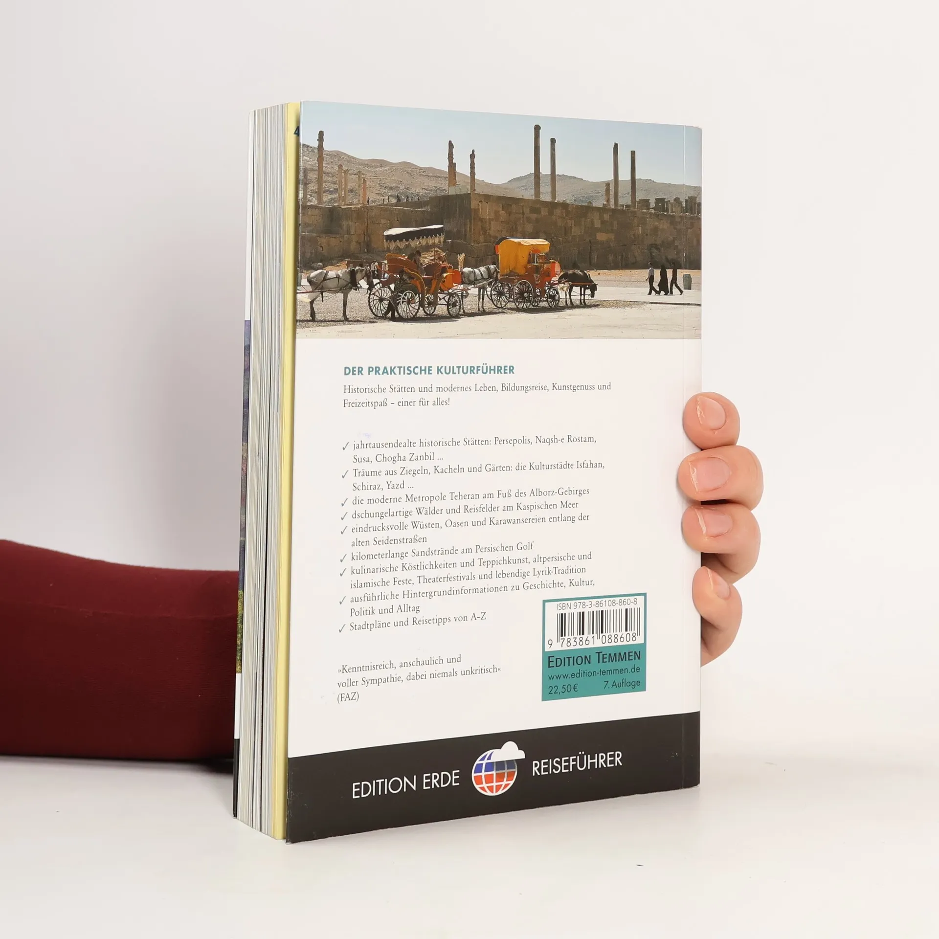 Iran ist ein Land im Umbruch - und ein touristisches Ziel, das es noch zu entdecken gilt. Das Land hat sich in den letzten Jahren konsequent westlichen Besuchern geöffnet und bietet Touristen und Geschäftsleuten gleichermaßen eine hervorragende Infrastruktur, die das Reisen im Land einfach und bequem machen. Der Edition Erde-Reiseführer 'Iran' versteht sich als ein modernes, praktisches Reisehandbuch, das neben allen historisch bedeutenden Städten des alten Persiens vor allem den modernen islamischen Staat Iran vorstellt. Gegenwärtige Probleme des Landes, politische und kulturelle Auseinandersetzungen werden nicht ausgeklammert, sondern für den westlichen Besucher kompetent und überzeugend vermittelt. Vor allem aber bietet der Reiseführer eine Begegnung mit den Menschen in Iran, ihrer Literatur, ihrer Folklore, der bildenden Kunst, der Musik, Religion und Architektur. So ist der Edition Erde-Band weit mehr als ein umfangreiches Reisehandbuch, er ist für westliche Besucher, die sich aus beruflichen oder privaten Gründen im Land aufhalten, eine unentbehrliche Landeskunde.