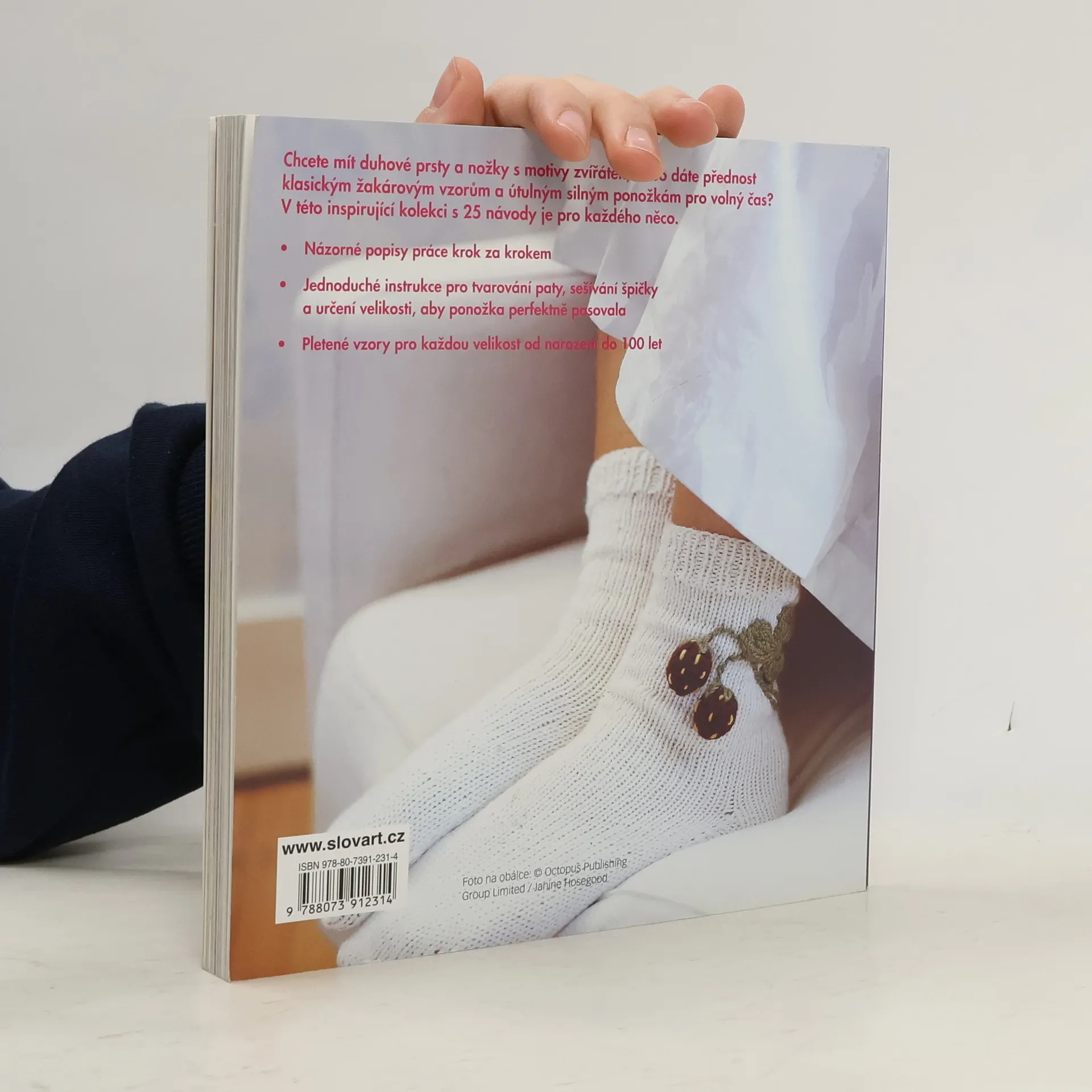 25 pletených modelů pro celou rodinu. Chcete mít duhové prsty a nožky s motivy zvířátek, dáváte přednost klasickým žakárovým vzorům a útulným silným ponožkám pro volný čas? V této inspirující kolekci s 25 návody je pro každého něco. Poprvé vydáno v roce 2008 nakladatelstvím Hamlyn, a division of Octopus Publishing Group Ltd., Endeavour House, London. První české vydání.