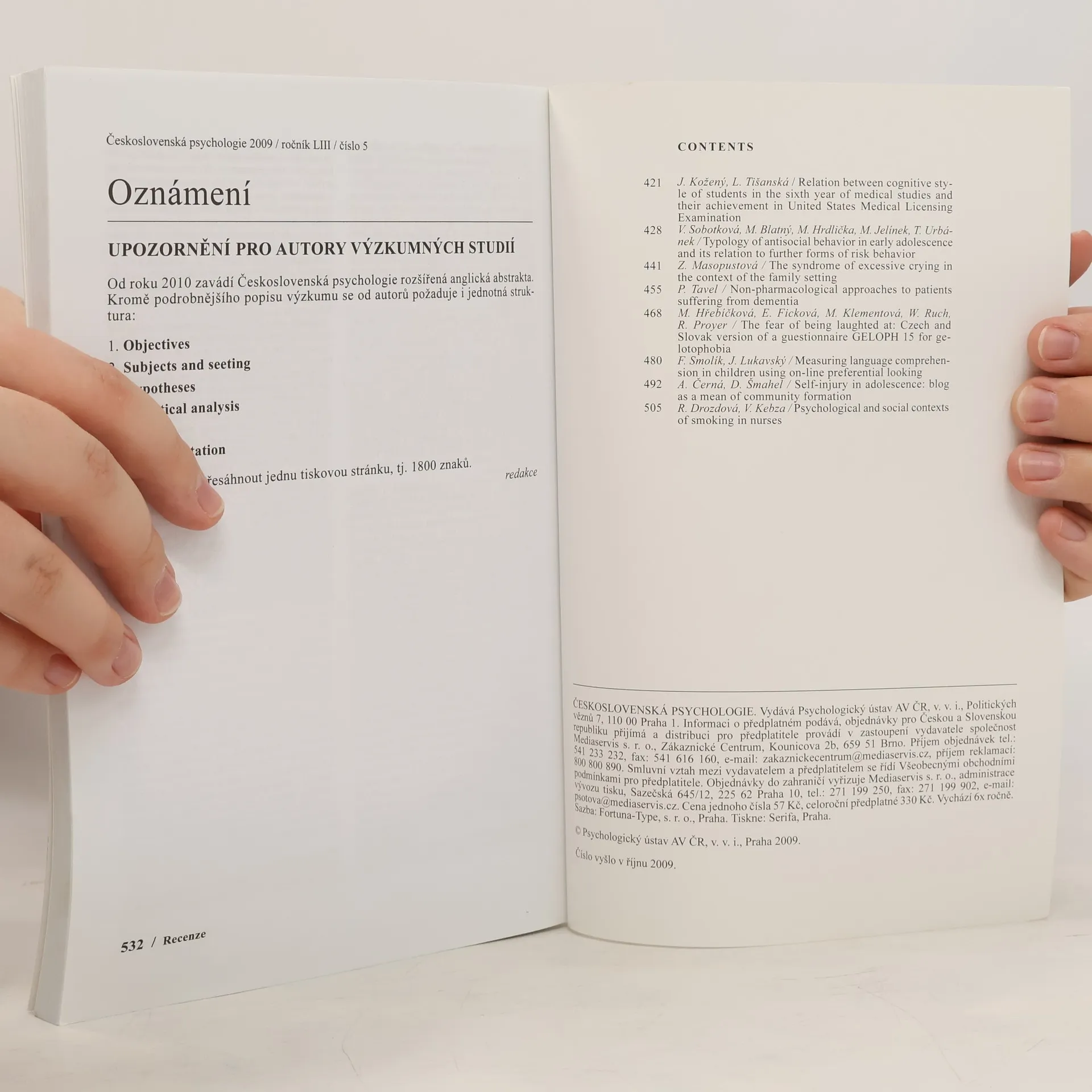Československá psychologie 5/2010, Autorenkollektiv