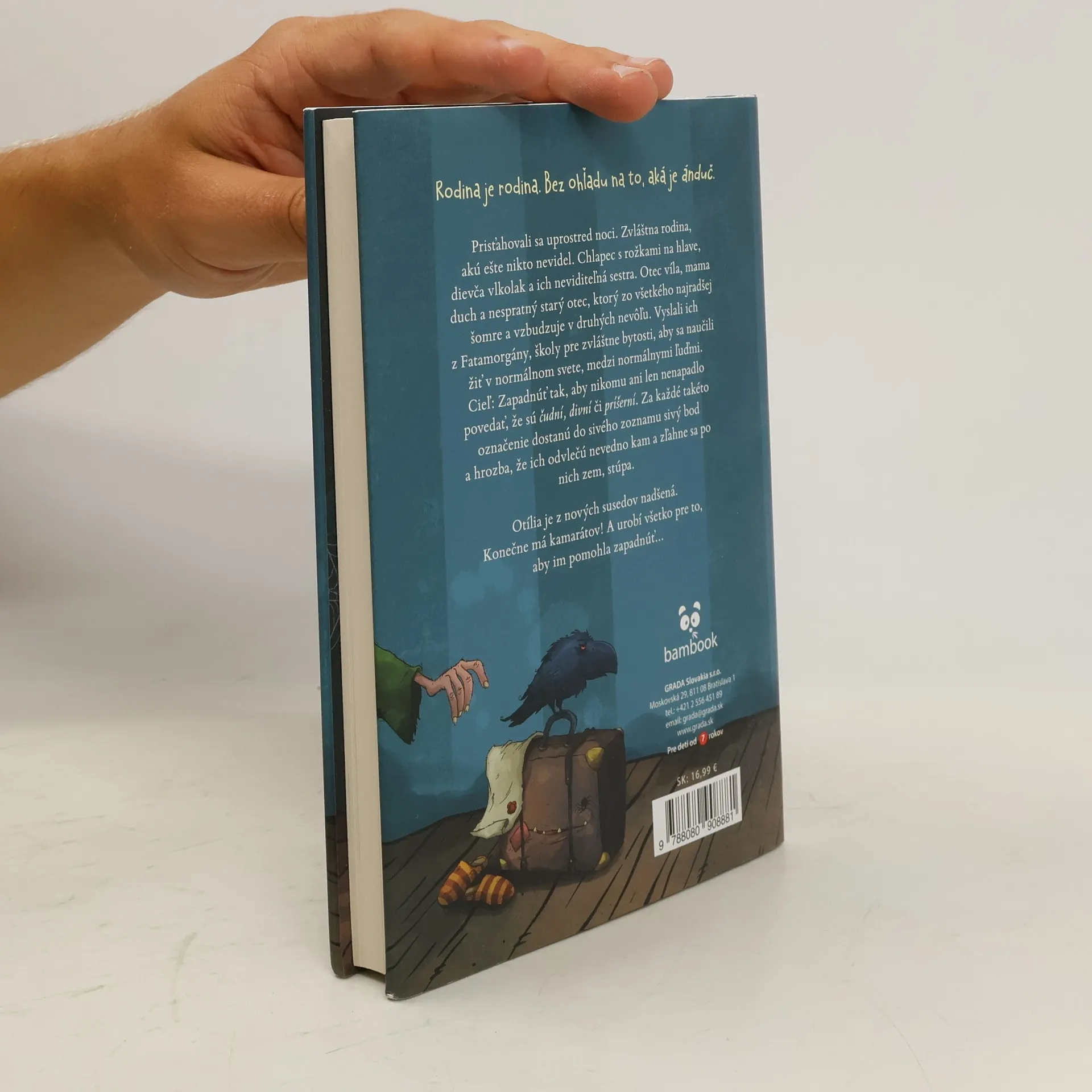 Rodina je rodina. Bez ohľadu na to, aká je ánduč. Prisťahovali sa uprostred noci. Zvláštna rodina, akú ešte nikto nevidel. Chlapec s rožkami na hlave, dievča vlkolak a ich neviditeľná sestra. Otec víla, mama duch a nespratný starý otec, ktorý zo všetkého najradšej šomre a vzbudzuje v druhých nevôľu. Vyslali ich z Fatamorgány, školy pre zvláštne bytosti, aby sa naučili žiť v normálnom svete, medzi normálnymi ľuďmi. Cieľ: Zapadnúť tak, aby nikomu ani len nenapadlo povedať, že sú čudní, divní či príšerní. Za každé takéto označenie dostanú do sivého zoznamu sivý bod a hrozba, že ich odvlečú nevedno kam a zľahne sa po nich zem, stúpa. Otília je z nových susedov nadšená. Konečne má kamarátov! A urobí všetko pre to, aby im pomohla zapadnúť...