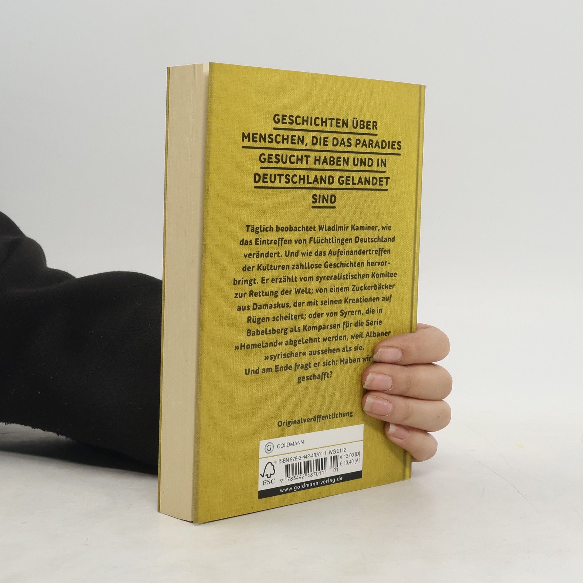 Täglich beobachtet Wladimir Kaminer, wie der Zuzug von Flüchtlingen Deutschland verändert. Und wie das Aufeinandertreffen der unterschiedlichen Kulturen zahllose Geschichten hervorbringt. Diese erzählt Wladimir Kaminer voll Humor und echter Neugier, aber ohne falsches Pathos. Er berichtet vom syreralistischen Komitee zur Rettung der Welt, das in seinem Dorf in Brandenburg gegründet wurde; von einem Zuckerbäcker aus Damaskus, der mit seinen Kreationen auf Rügen scheitert, von schockierten muslimischen Asylbewerbern, die Wladimirs Sohn mit leckeren Schweineöhrchen beschenken will, oder von Syrern, die in Babelsberg als Komparsen für die Serie »Homeland« abgelehnt werden, weil Albaner »syrischer« aussehen als sie. Und am Ende fragt er: Haben wir es geschafft?