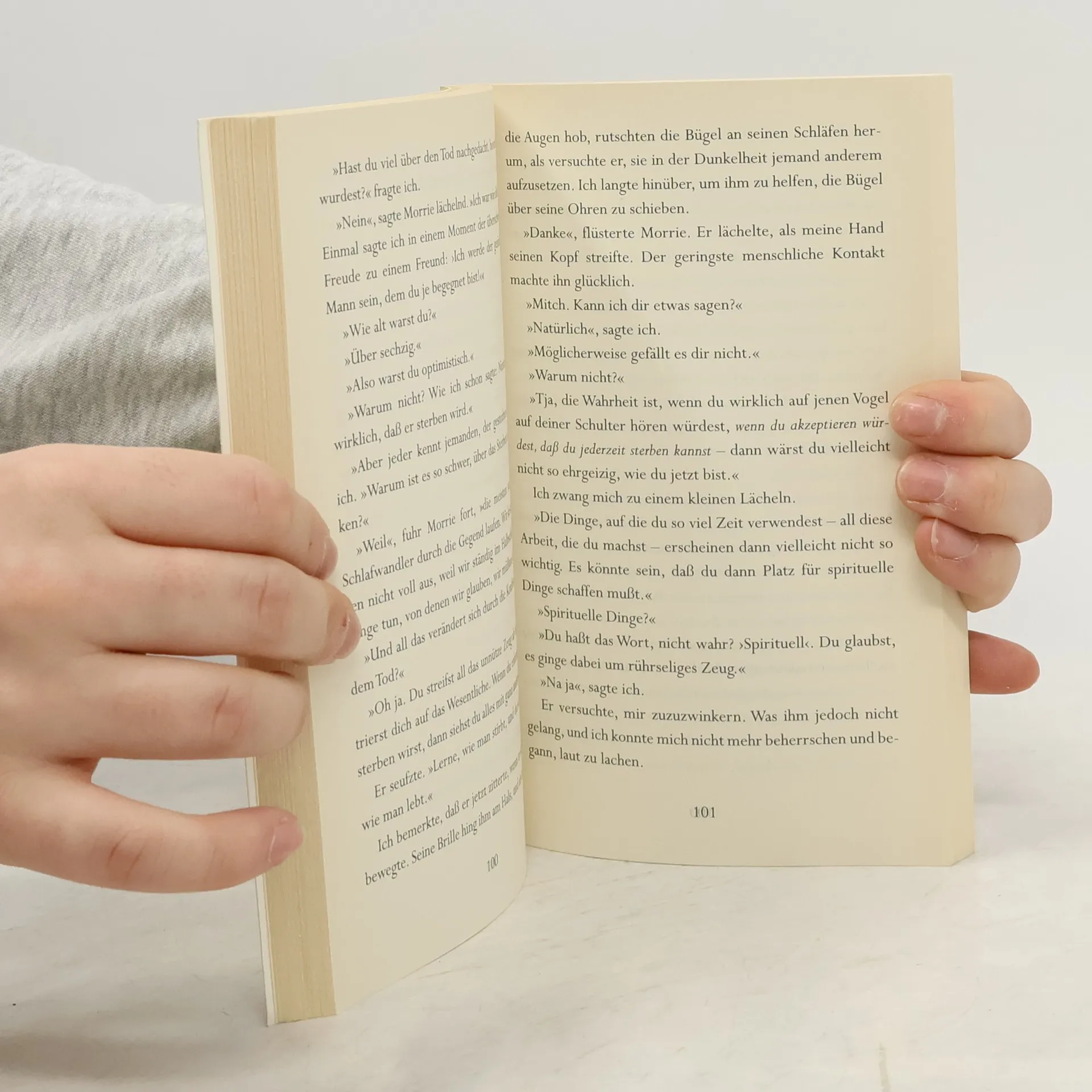 Es ist mir völlig unverständlich, wie es zu einem Hype um das Buch kommen konnte. Ich habe es gerade gelesen - und habe mich zum Schluss nur noch gequält, weil ich die Lektüre von Büchern nur ungern abbreche. Die hochgelobten „Lektionen des Lebens“ wirken banal und oberflächlich – sie bieten kaum neue oder tiefgründige Einsichten: Light Philosophy at its very best. Die konstante Idealisierung des Mentors Morrie wirkt mit der Zeit ermüdend. Zudem hatte ich mehr und mehr den Eindruck, dass hier weniger echte philosophische Auseinandersetzung stattfindet, sondern vorrangig die Geschichte vom Lebensende Morries ausgeschlachtet wird. Philosophische Überlegungen über die Essenz des Lebens sind da leider Nebenschauplatz. Der körperliche Verfall Morries wird sehr detailliert geschildert – etwa, wann er sich nicht mehr selbst waschen kann oder wie seine Lunge zunehmend versagt. Immer wieder dreht es sich z.B. um die Frage, wann der Moment sein wird, ab dem Morrie seinen Hintern nicht mehr selbständig säubern kann. Für mich geht es hier nicht um einen respektvollen Umgang mit dem Thema Tod, und ich werte dieses Buch somit als schlichtweg Voyeurismus, bei dem die Faszination am Verfall eines ursprünglich vielleicht wirklich herausragenden Mannes im Vordergrund steht. Dieses "Denkmal" hätte ihm eigentlich erspart bleiben können. Die Lektüre ist daher eine echte Zeitverschwendung.