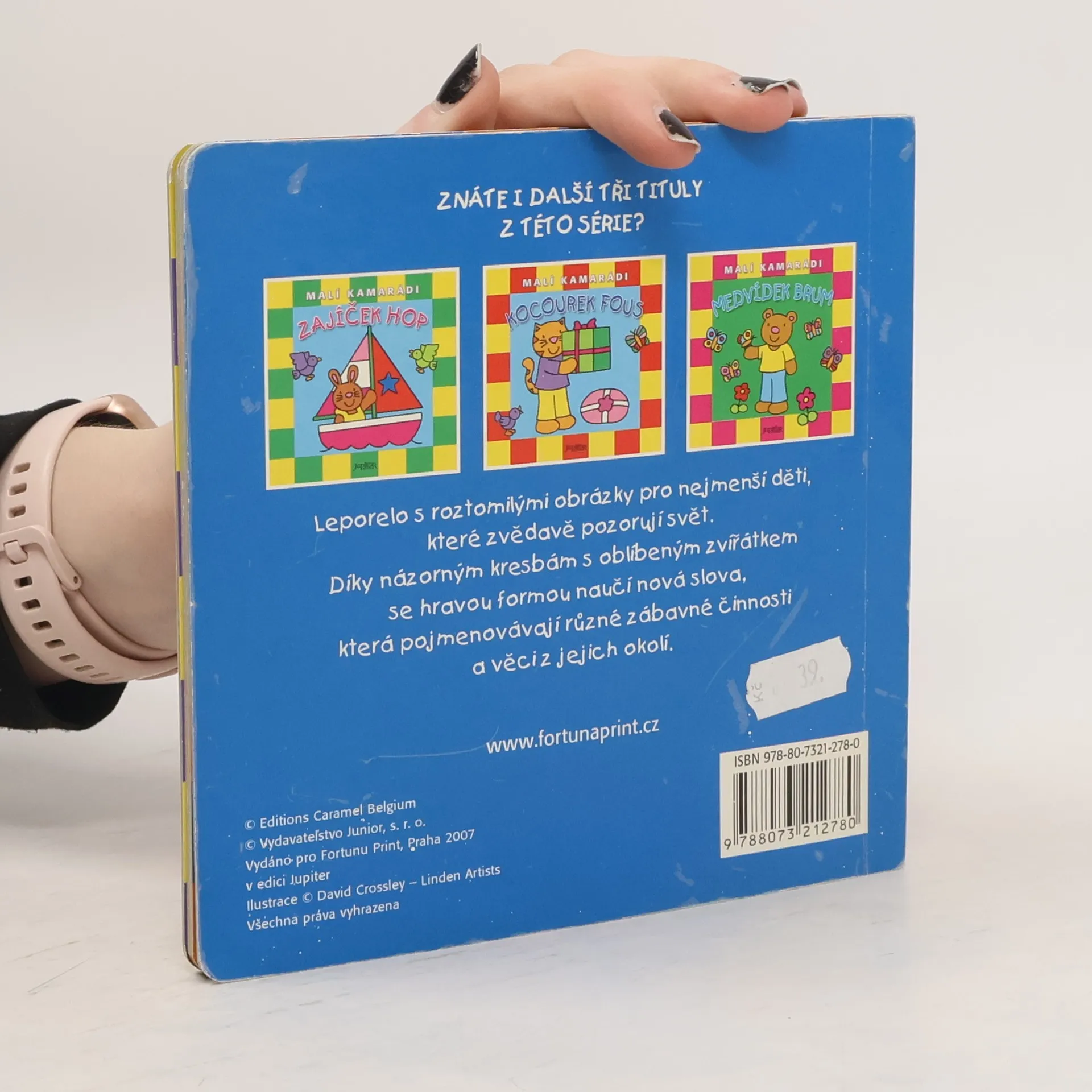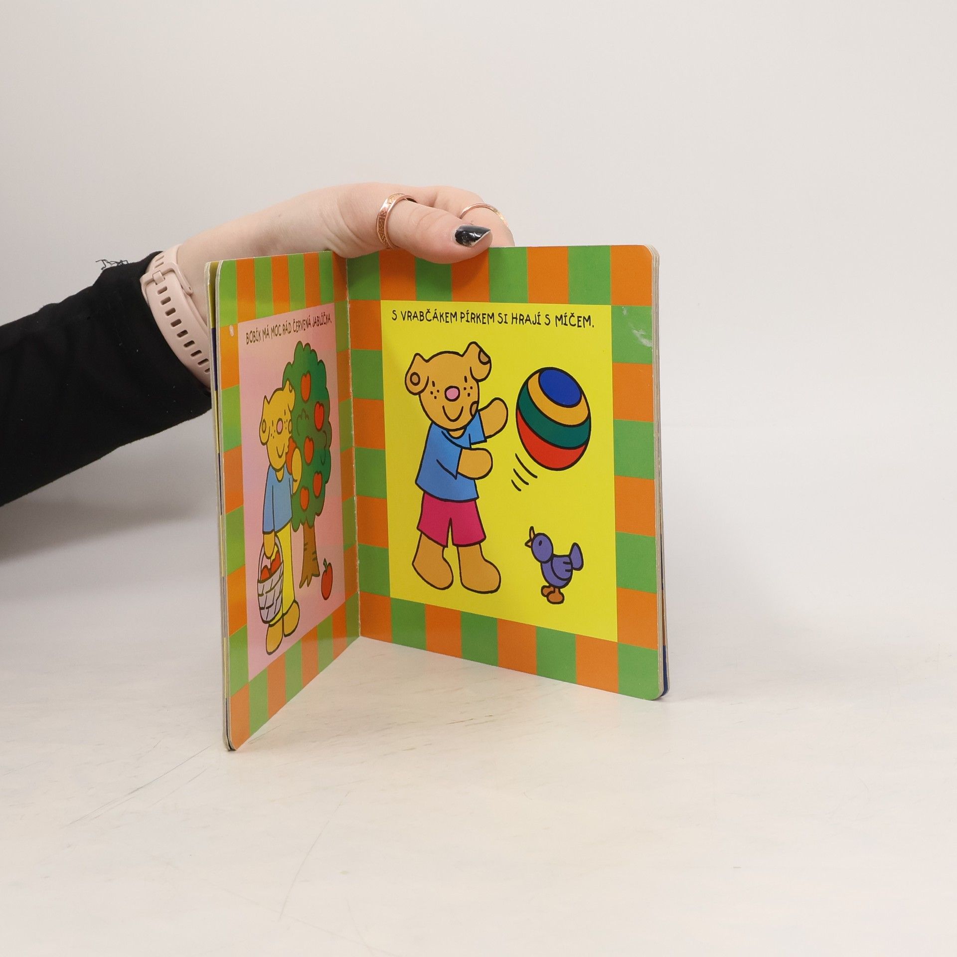 Leporelo s roztomilýmí obrázky pro nejmenší děti, které zvedavě pozorují svět. Díky názorným kresbám s oblíbeným zvířátkem se hravou formou naučí nová slova, která pojmenovávají různé zábavné činnosti a věci z jejich okolí.
