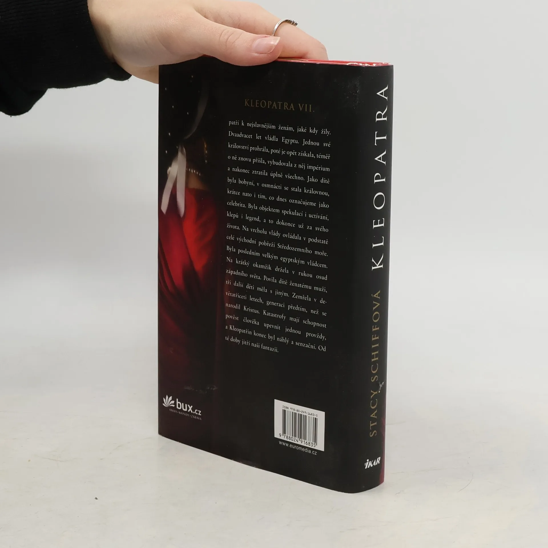 Život a smrt egyptské královny Kleopatry stále vyvolává mnoho spekulací mezi historiky a podněcuje fantazii běžných čtenářů. Autorka se v poutavém líčení osudu této proslulé panovnice soustředí nejen na politické pozadí historických událostí a složité vztahy v rodu Ptolemaiů, ale především na základní převratné události královnina života a dva zásadní muže jejího života - Caesara a Marka Antonia.