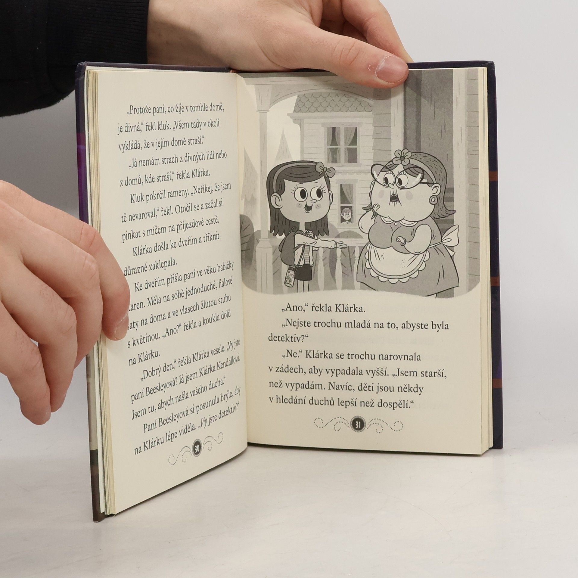 Kaz není obyčejný kluk, je to duch. Klárka zas není obyčejná holka – na rozdíl od ostatních lidí totiž dokáže vidět duchy. Jejich detektivní kancelář je proto jako stvořená pro řešení zapeklitých záhad! Tentokrát je vyšetřování zavede na sousedovic půdu, ze které se začaly ozývat strašidelné zvuky. Kaz navíc oknem zahlédne psa, který vypadá jako jeho duší psí kamarád Kosmo. Bude třeba opustit bezpečné zdi knihovny a vydat se ven. Jak to ale udělat, aby Kaze venku neodfouknul vítr a neodnesl ho pryč?