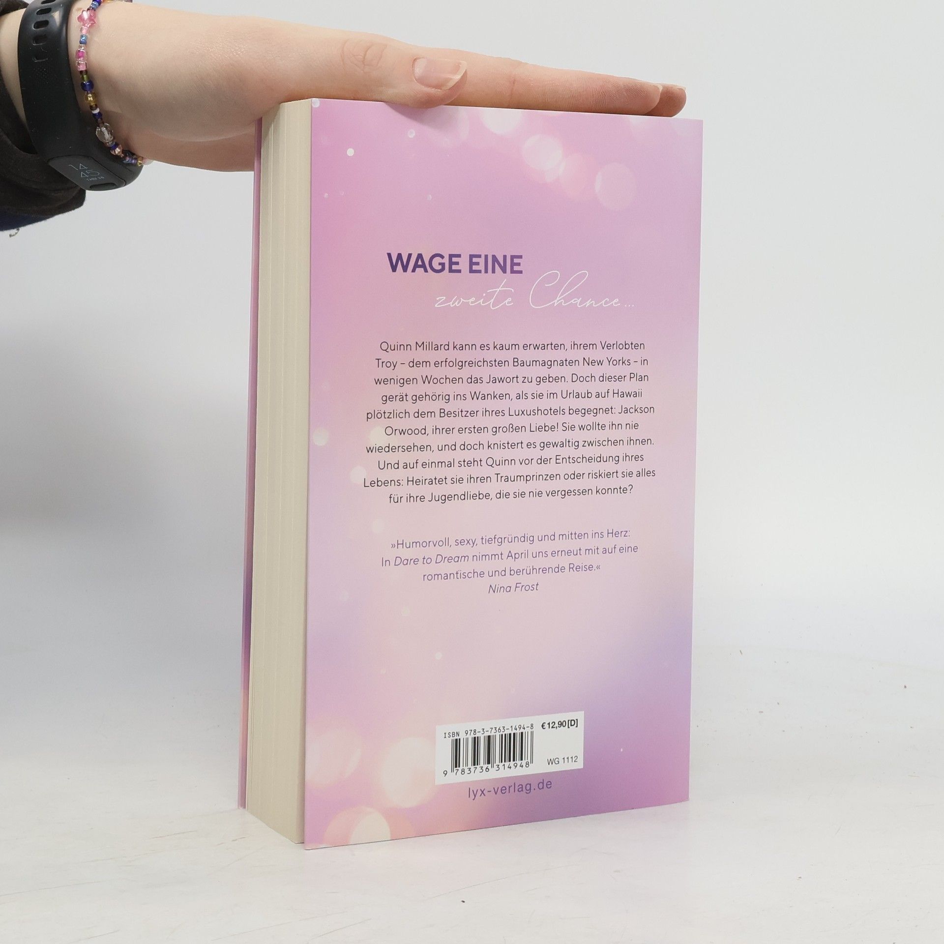 Wage eine zweite Chance ... Quinn Millard kann es kaum erwarten, ihrem Verlobten Troy - dem erfolgreichsten Baumagnaten New Yorks - in wenigen Wochen das Jawort zu geben. Doch dieser Plan gerät gehörig ins Wanken, als sie im Urlaub auf Hawaii plötzlich dem Besitzer ihres Luxushotels begegnet: Jackson Orwood, ihrer ersten großen Liebe! Sie wollte ihn nie wiedersehen, und doch knistert es gewaltig zwischen ihnen. Und auf einmal steht Quinn vor der Entscheidung ihres Lebens: Heiratet sie ihren Traumprinzen oder riskiert sie alles für ihre Jugendliebe, die sie nie vergessen konnte? „Humorvoll, sexy, tiefgründig und mitten ins Herz: In DARE TO DREAM nimmt April uns erneut mit auf eine romantische und berührende Reise.“ NINA FROST Band 2 der romantisch-leichten DARE-TO- LOVE-Reihe