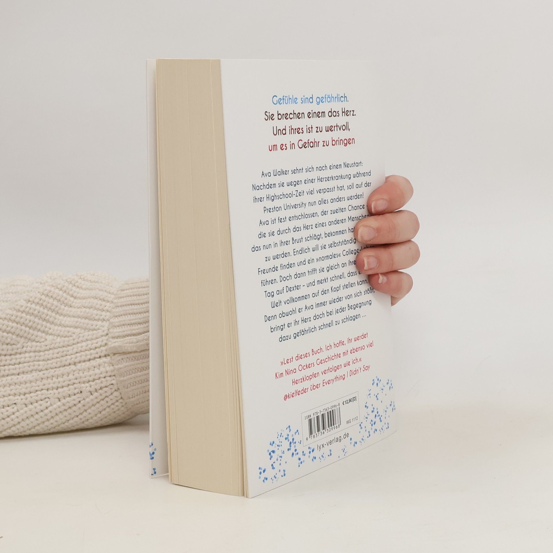 Gefühle sind gefährlich. Sie brechen einem das Herz. Und ihres ist zu wertvoll, um es in Gefahr zu bringen Ava Walker sehnt sich nach einem Neustart: Nachdem sie wegen einer Herzerkrankung während ihrer Highschool-Zeit viel verpasst hat, soll auf der Preston University nun alles anders werden! Ava ist fest entschlossen, der zweiten Chance - die sie durch das Herz eines anderen Menschen, das nun in ihrer Brust schlägt, bekommen hat - gerecht zu werden. Endlich will sie selbstständig sein, Freunde finden und ein »normales« College-Leben führen. Doch dann trifft sie gleich an ihrem ersten Tag auf Dexter - und merkt schnell, dass er ihre Welt vollkommen auf den Kopf stellen kann. Denn obwohl er Ava immer wieder von sich stößt, bringt er ihr Herz doch bei jeder Begegnung dazu gefährlich schnell zu schlagen ... „Lest dieses Buch. Ich hoffe, ihr werdet Kim Nina Ockers Geschichte mit ebenso viel Herzklopfen verfolgen wie ich.“ @KIELFEDER über EVERYTHING I DIDN'T SAY