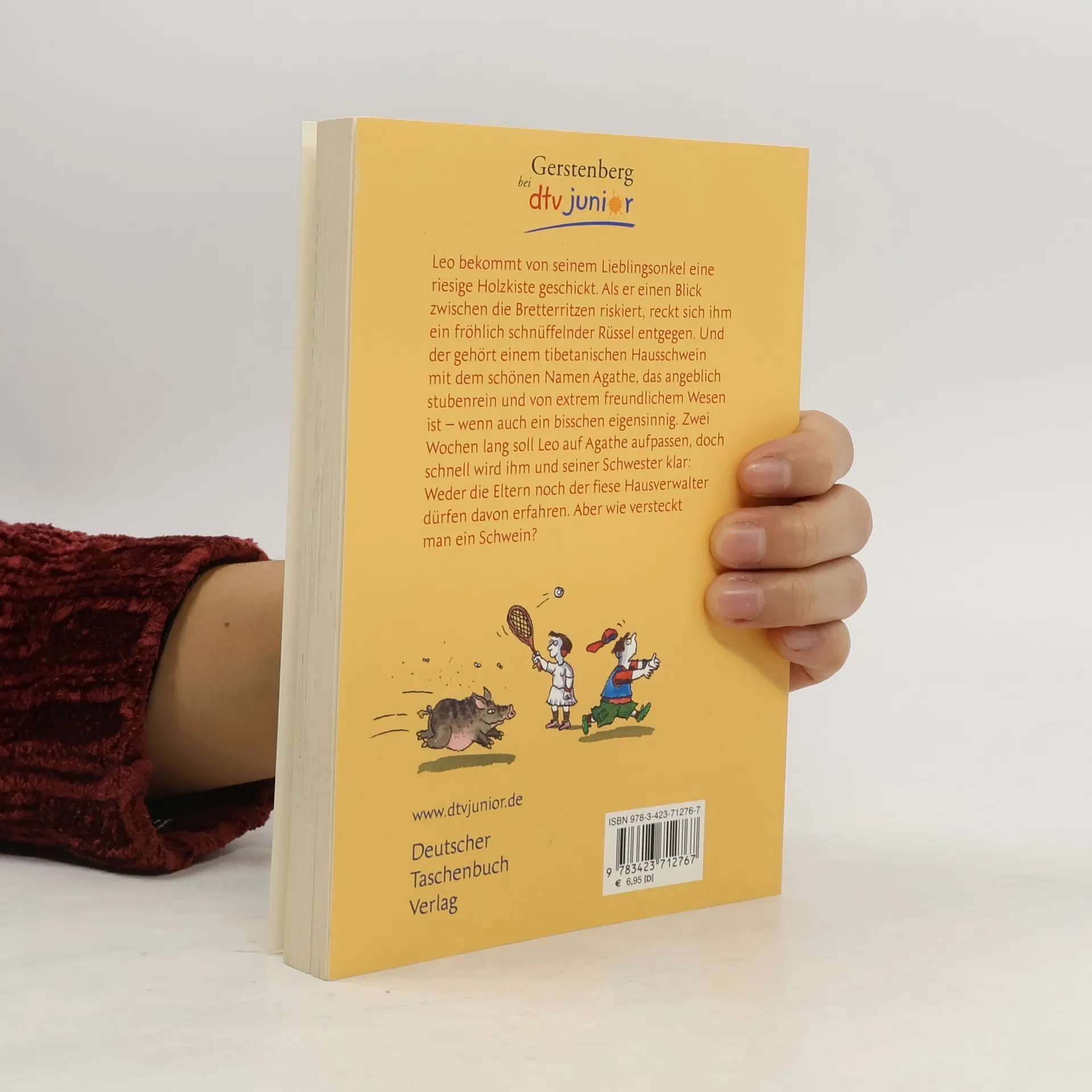 Turbulentes Lesefutter! Agathe kommt aus Tibet, hört aufs Wort, ist stubenrein und von extrem freundlichem Wesen, wenn auch ein bisschen eigensinnig. Deshalb pass gut auf sie auf, ja? Dein Onkel ErnstAls Leo kurz vor den Osterferien aus der Schule kommt, wartet eine große Holzkiste auf ihn. Eine Holzkiste mit offensichtlich lebendigem, quiekendem und stark riechendem Inhalt. Als er die Kiste öffnet springt das tibetanische Kleinschwein Agathe heraus. Während Leo noch den Brief von seinem Onkel mit der Bitte, sich in den nächsten Wochen um Agathe zu kümmern, liest, hat die sich schon über den Mülleimer hergemacht. In den nächsten Stunden ist Leo vollauf damit beschäftigt, Agathe und die Wohnung wieder in einen präsentablen Zustand zu versetzen. Wobei er Agathe durchaus nicht vorzeigen will. Sein Vater würde einen Anfall bekommen. Und nicht nur der. Wenn die Hausverwaltung etwas von dem Schwein erführen … nicht auszudenken. Doch vorerst muss Leo einfach den nächsten Schultag überstehen - mit Agathe. Denn der Baum, an den er sie gebunden hat, hat nicht lange gehalten …