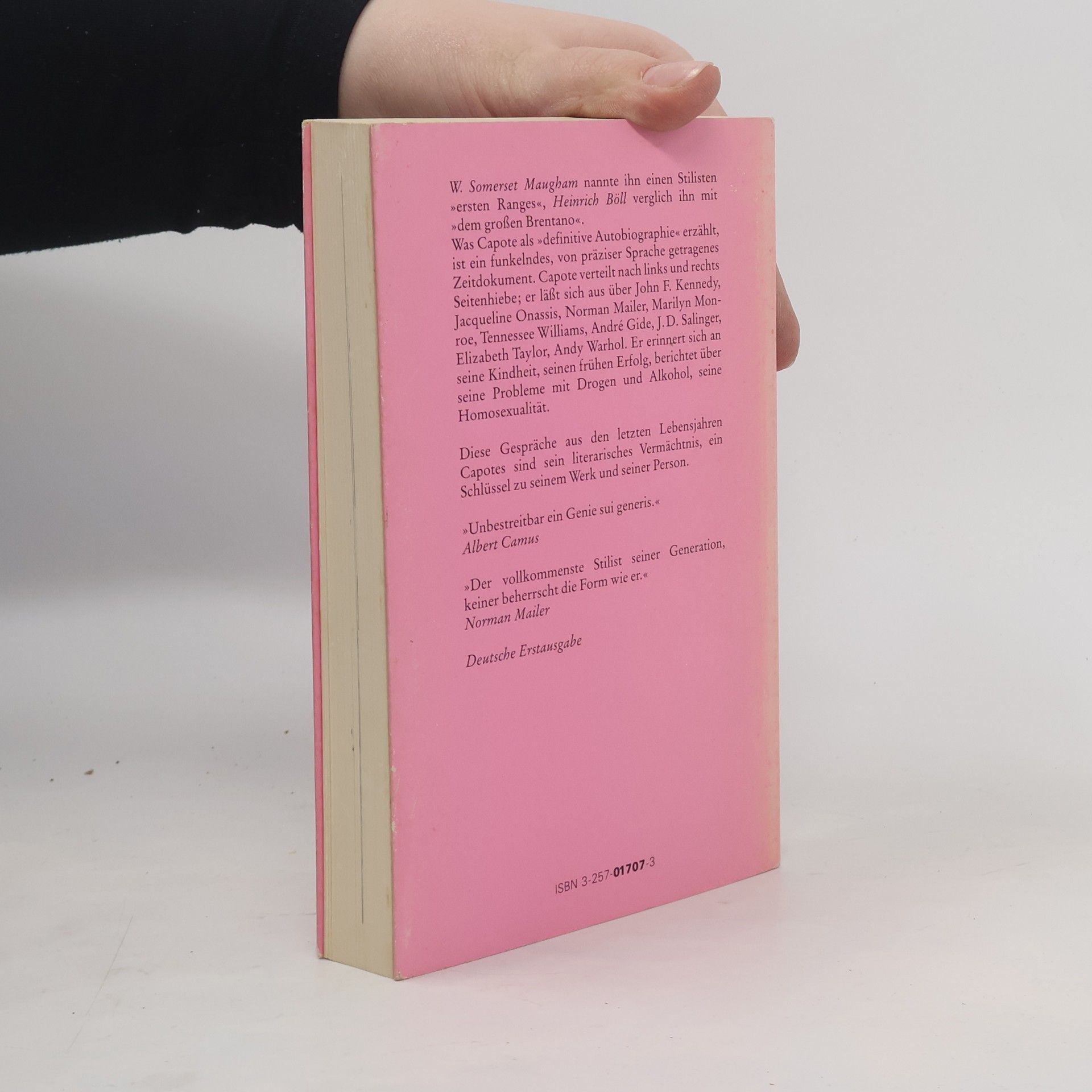 In seinen letzten zwei Lebensjahren trafen sich Truman Capote und Lawrence Grobel mehrmals, aus einem ursprünglich geplanten einmaligen Interview wurde dieses lange intime Gespräch. Funkelnd, scharfzüngig und sehr persönlich erzählt Capote aus seinem Leben, spricht offen über sein Schreiben, seine Probleme mit Drogen und Alkohol, seine Homosexualität, Depressionen und Ängste. Ein unverzichtbarer Schlüssel zu Truman Capotes Person und seinem Werk.