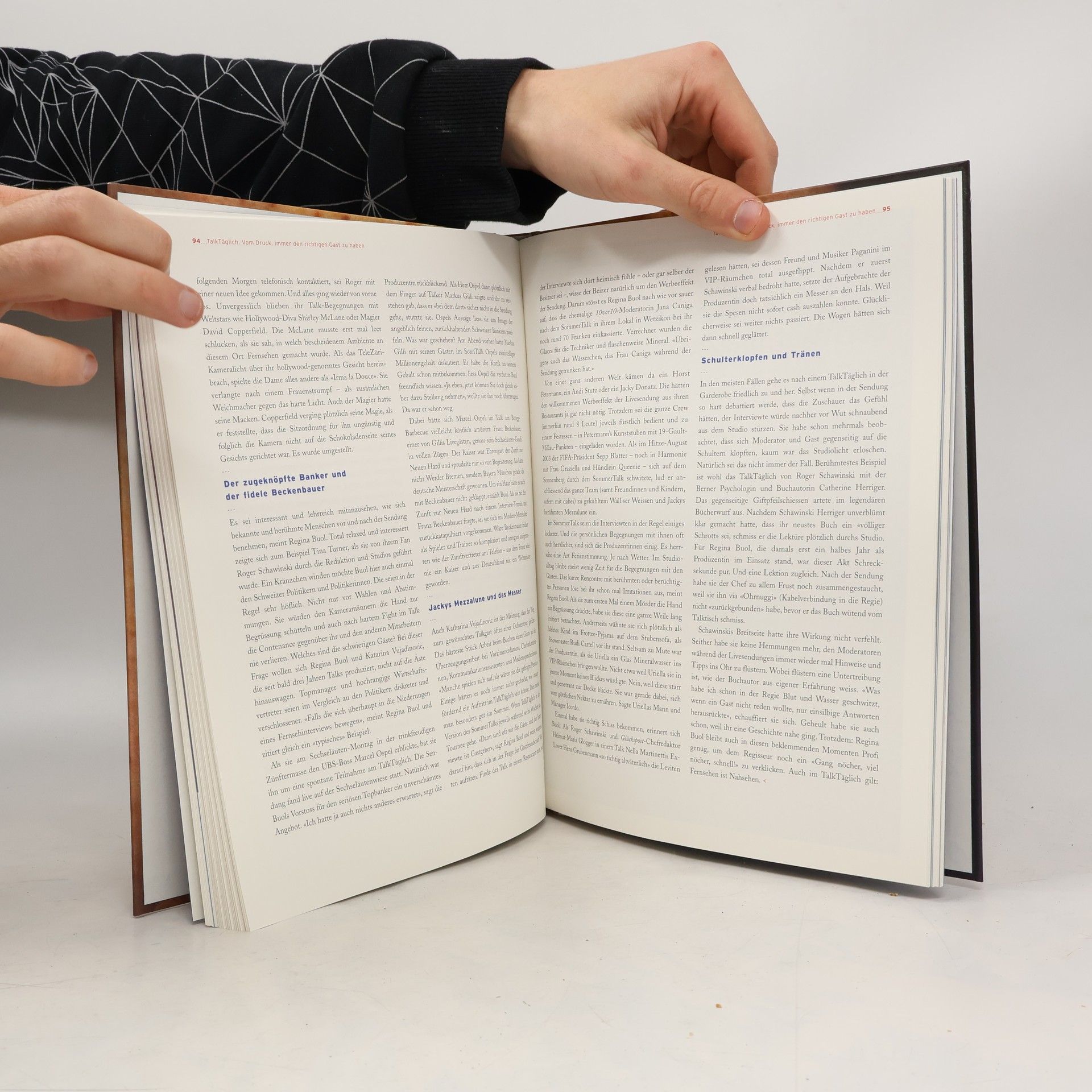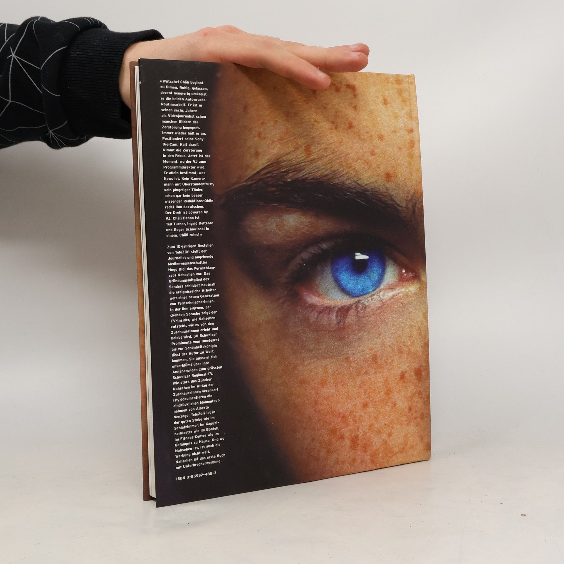 Wiitschei Chäli beginnt zu filmen und umkreist die Autowracks mit ruhiger, neugieriger Gelassenheit. In seinen sechs Jahren als Videojournalist hat er viele Zerstörungen festgehalten. Er positioniert seine Sony DigiCam, fokussiert die Zerstörung und wird zum Programmdirektor, der allein bestimmt, was News ist. Kein frustrierter Kameramann oder besserwisserischer Redaktions-Oldie redet ihm dazwischen. Chäli Benno ist eine Mischung aus Ted Turner, Ingrid Deltenre und Roger Schawinski – Chäli rules! Anlässlich des 10-jährigen Bestehens von TeleZüri präsentiert der Journalist und angehende Medienwissenschaftler Hugo Bigi das Fernsehkonzept Nahsehen. Als Gründungsmitglied des Senders schildert er die dynamische Arbeitswelt einer neuen Generation von FernsehmacherInnen. In packender Sprache zeigt Bigi, wie Nahsehen entsteht und von den ZuschauerInnen erlebt wird. 30 Schweizer Prominente, vom Bundesrat bis zur Schönheitskönigin, äußern sich unverblümt über ihre Beziehung zu TeleZüri. Die Momentaufnahmen von Alberto Venzago dokumentieren, wie stark das Zürcher Nahsehen im Alltag der ZuschauerInnen verankert ist – in der guten Stube, im Schlafzimmer, im Kapuzinerkloster, im Bordell, im Fitness-Center und im Gefängnis. Wo Nahsehen ist, ist auch die Werbung nicht weit. Nahsehen ist das erste Buch mit Unterbrecherwerbung.