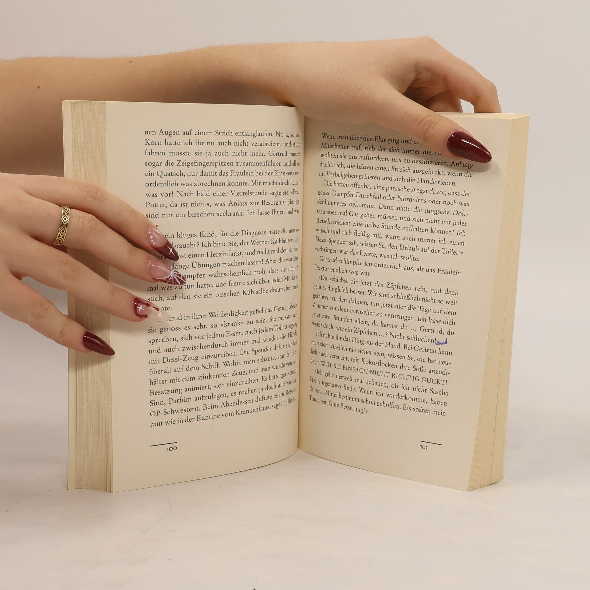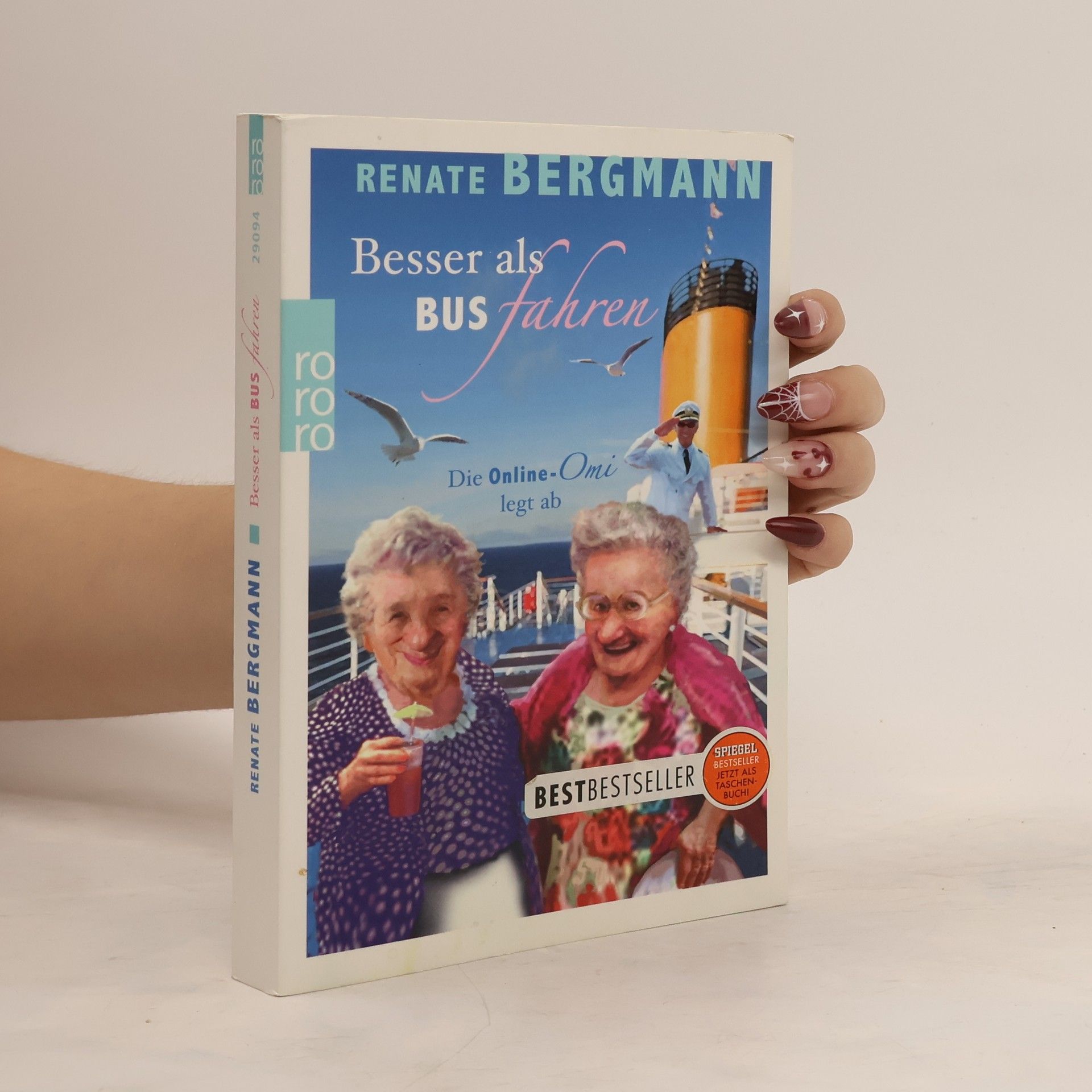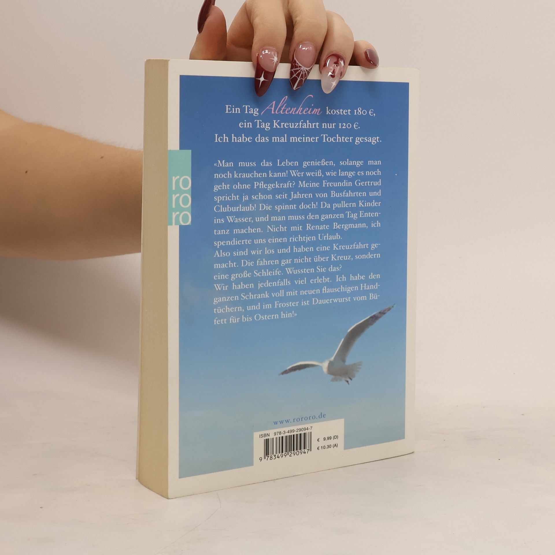 Ein Tag Altenheim kostet 180 €, ein Tag Kreuzfahrt nur 120 €. Ich habe das mal meiner Tochter gesagt.«Man muss das Leben genießen, solange man noch krauchen kann! Wer weiß, wie lange es noch geht ohne Pflegekraft? Meine Freundin Gertrud spricht ja schon seit Jahren von Busfahrten und Kluburlaub! Die spinnt doch! Da pullern Kinder ins Wasser und man muss den ganzen Tag Ententanz machen. Nicht mit Renate Bergmann, ich spendierte uns einen richtjen Urlaub.Also sind wir los und haben eine Kreuzfahrt gemacht. Die fahren gar nicht über Kreuz, sondern eine große Schleife. Wussten Sie das?Wir haben jedenfalls viel erlebt. Ich habe den ganzen Schrank voll mit neuen flauschigen Handtüchern, und im Froster ist Dauerwurst vom Büfett für bis Ostern hin!»