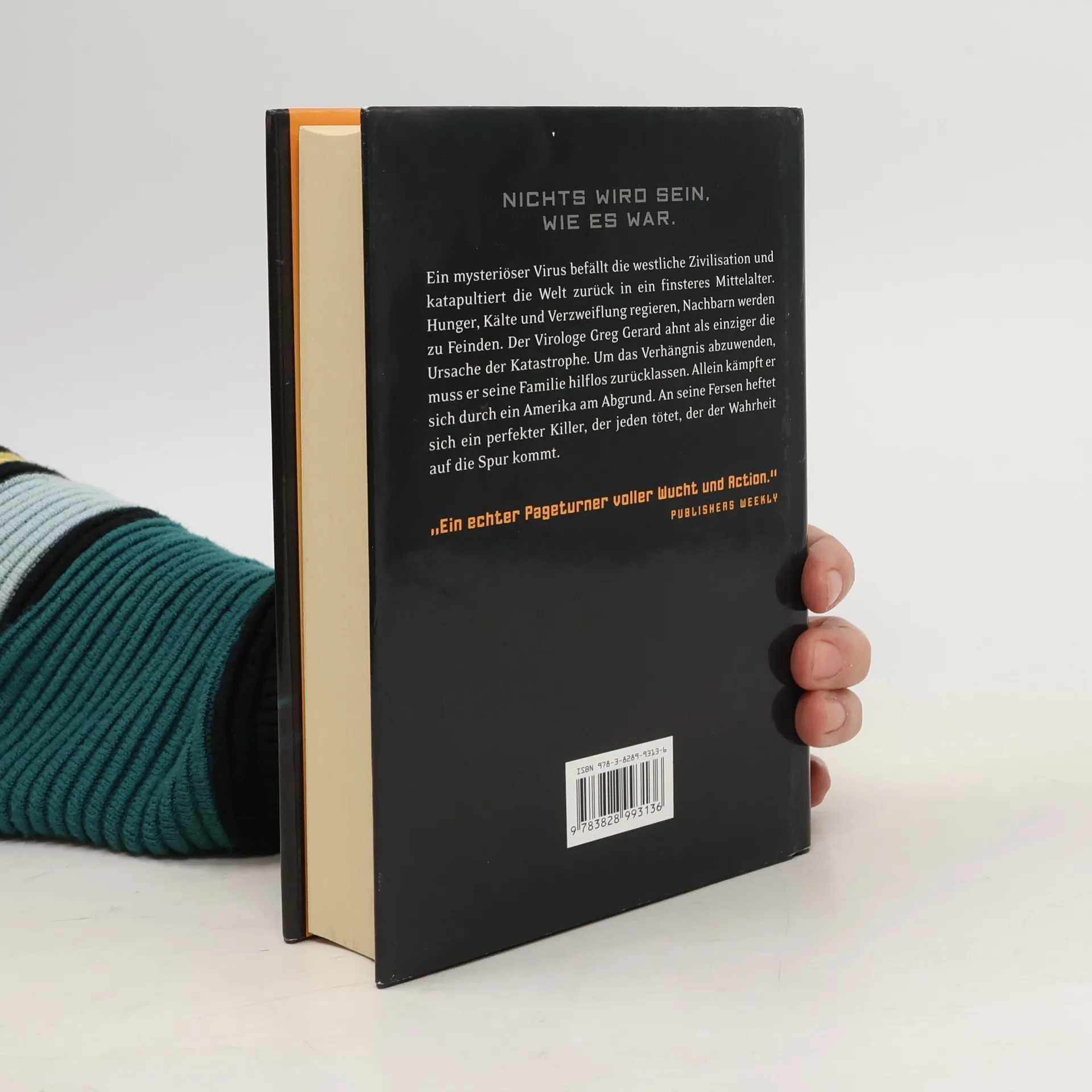 Flugzeuge fallen vom Himmel, Kraftwerke explodieren, Millionen Menschen sterben Ein mysteriöser Virus befällt die westliche Zivilisation und katapultiert die Welt zurück in ein finsteres Mittelalter. Hunger, Kälte und Verzweiflung regieren, Nachbarn werden zu Feinden. Der Virologe Greg Gerard ahnt als Einziger die wahre Ursache der Katastrophe. Um das Verhängnis abzuwenden, muss er seine Familie hilflos zurücklassen. Allein kämpft er sich durch ein Amerika am Abgrund. Seinen Spuren folgt ein perfekter Killer, der jeden tötet, der in die Nähe der Wahrheit kommt. Nichts wird sein, wie es war.