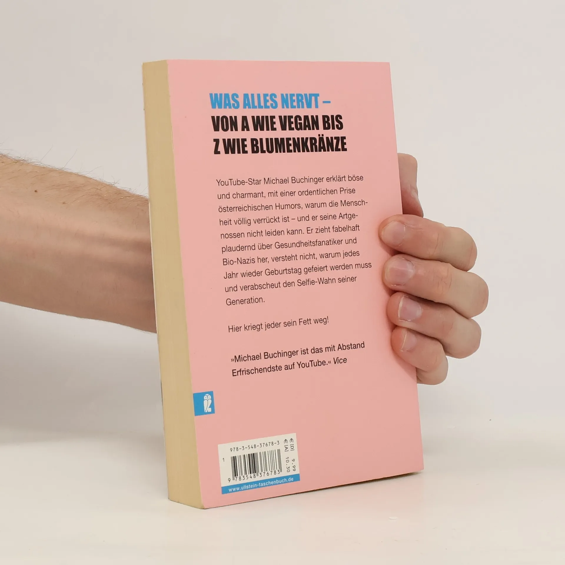Was alles nervt - von A wie vegan bis Z wie Blumenkränze YouTube-Star Michael Buchinger erklärt böse und charmant, mit einer ordentlichen Prise österreichischem Humor, warum die Menschheit völlig verrückt ist und er seine Artgenossen nicht leiden kann. Buchinger zieht fabelhaft über Gesundheitsfanatiker und Bio-Nazis her, versteht nicht, warum jedes Jahr wieder Geburtstag gefeiert werden muss und verabscheut den Selfie-Wahn seiner Generation. Hier kriegt jeder sein Fett weg! „Michael Buchinger ist das mit Abstand erfrischendste auf YouTube.“ Vice