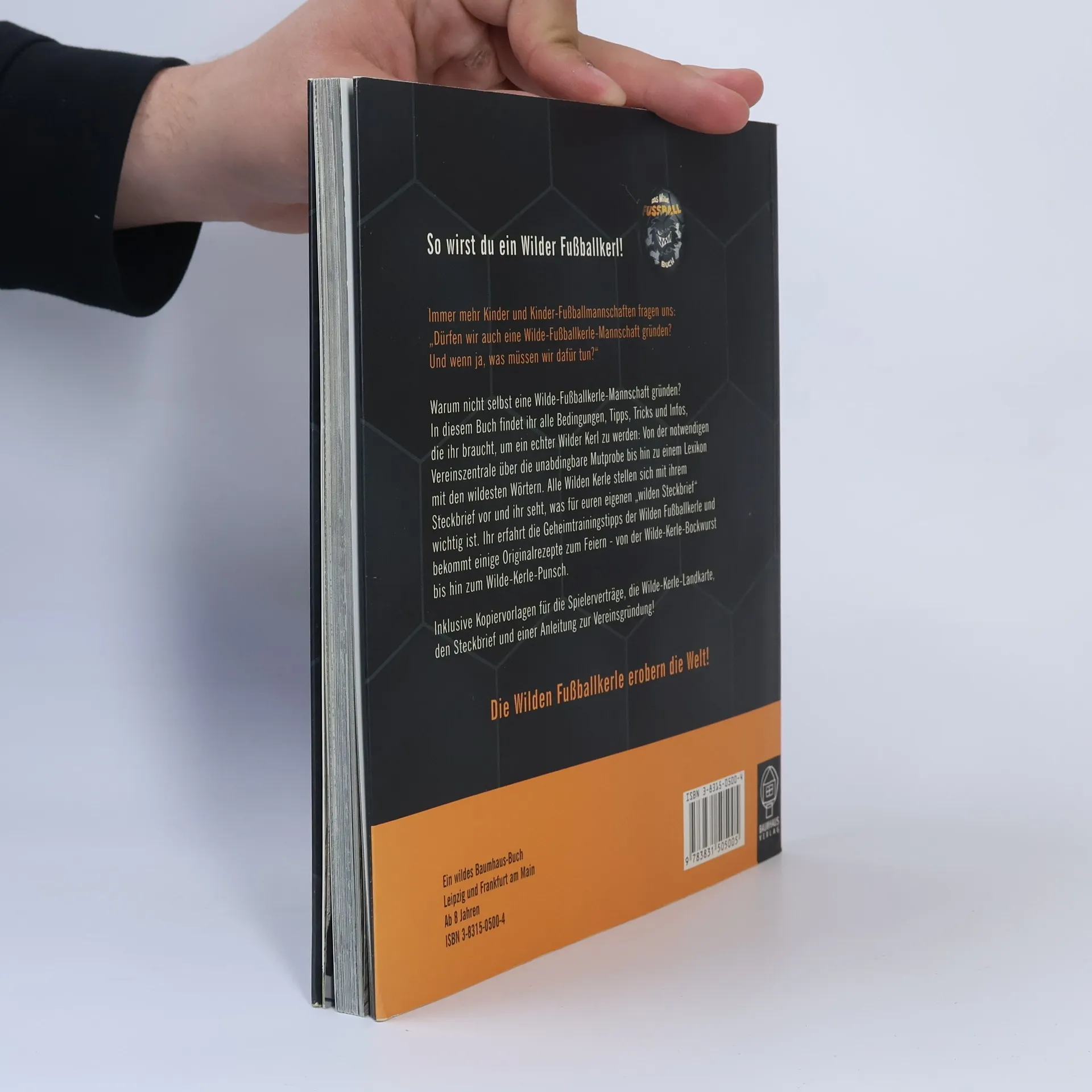 Weitere Angaben Inhalt: Warum nicht selbt eine Wilde Fußballkerle Mannschaft gründen? Wie jeder Fußballkerle-Fan es anstellt, sein eigenes Team zu gründen, steht hier schwarz auf weiß: von der notwendigen Vereinszentrale über die unabdingbare Mutprobe bis hin zum Wörterbuch der Fußballer-Ausdrücke und dem Wilde Kerle Schimpfwörterlexikon. Natürlich fehlt es auch nicht an Trainingstipps, praktischen Anleitungen zum Bauen eines Baumhauses und den leckeren Rezepten - von der einzigartigen Wilde Kerle Bockwurst bis hin zum Wilde Kerle Kinderpunsch. Inklusive Piratenschatzkarten-Spielervertrag, Blanko-Satzung zum Kopieren und der Wilden Kerle-Landkarte. Extra: Wilde Kerle-Tatooschablone als Super-Gimmick