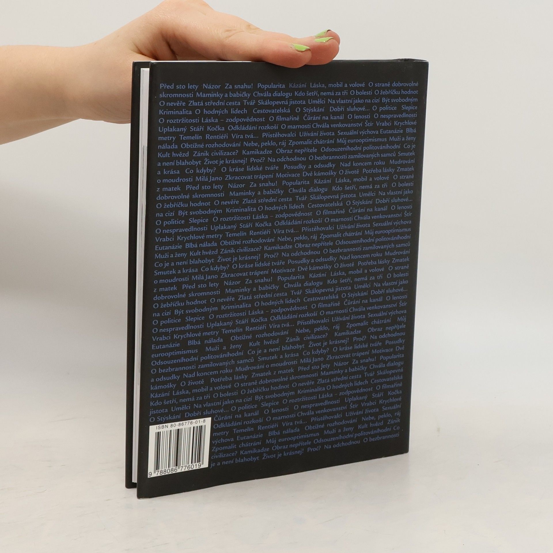 Sloupky a fejetony filmového režiséra Jana Špáty. Výbor fejetonů, které vycházely v Lidových novinách, MF Dnes, Týdeníku Rozhlas a v časopisu Marianne. Texty, jež lze chápat jako extrakty životních zkušeností tohoto výsostného člověka a umělce, nahlížejí problémy každého z nás s životní skepsí prosluněnou pochopením a láskou. Jejich protipól tvoří neméně zajímavé a hluboké fotografie Jindřicha Štreita.
