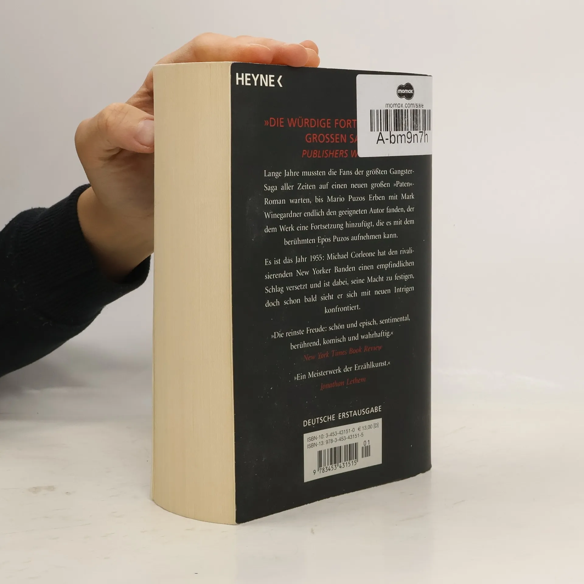Vor fünfunddreißig Jahren veränderten Mario Puzos legendärer Roman und Francis Ford Coppolas preisgekrönte Filme über die amerikanische Mafia die populäre Kultur schlagartig. Nun fügt Mark Winegardner, der von Puzos Erbengemeinschaft persönlich ausgewählt wurde, der Saga einen würdigen neuen, großen Paten-Roman hinzu. „Die Saga um die Corleones wird phänomenal unterhaltsam und psychologisch tiegfründig weitergesponnen. Wunderbar geschrieben, mit viel Geschick und Herzblut. Alle Fans von “Der Pate„ werden diesen neuen Roman lieben!“ Publishers Weekly "Die Fortsetzung von Mario Puzos Klassiker 'Der Pate' hat Klasse und ist klasse.„ Bild am Sonntag “. die Atmosphäre ist da." Stern