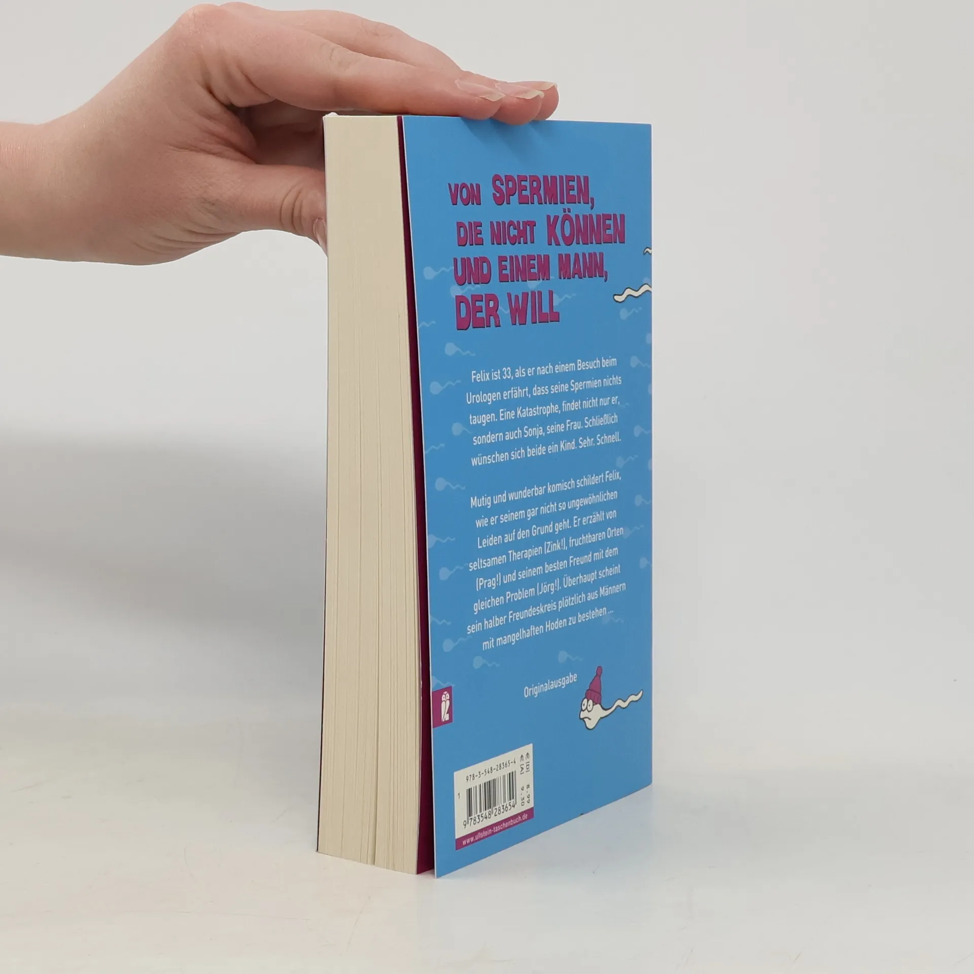 Felix ist im besten Mannesalter, als er nach einem Besuch beim Urologen erfährt, dass seine Spermien nichts taugen. Eine Katastrophe, findet nicht nur er, sondern auch Sonja, seine Frau. Schließlich wünschen sich beide ein Kind. Sehr. Schnell. Mutig und wunderbar komisch schildert Felix, wie er seinem gar nicht so ungewöhnlichen Leiden auf den Grund geht. Er erzählt von seltsamen Therapien (Zink!), fruchtbaren Orten (Prag!) und seinem besten Freund mit dem gleichen Problem (Jörg!). Überhaupt scheint sein halber Freundeskreis plötzlich aus Männern mit mangelhaften Hoden zu bestehen.
