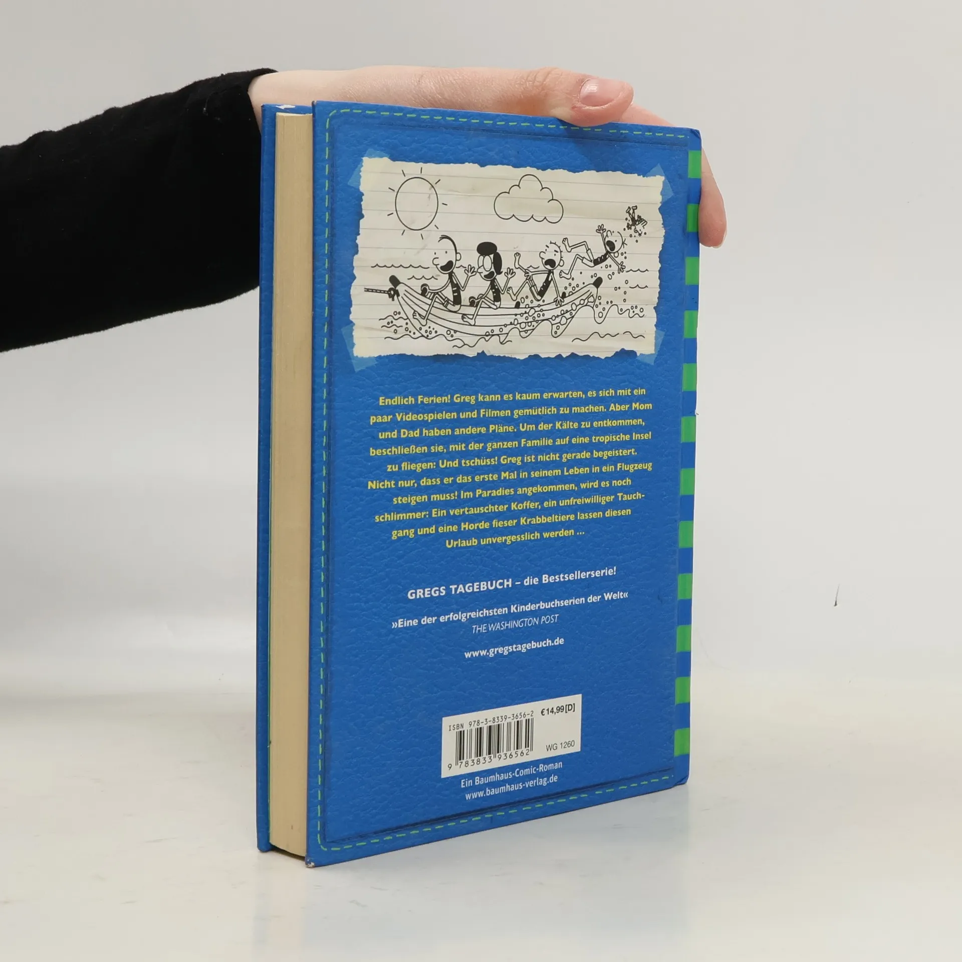 Endlich Ferien! Greg kann es kaum erwarten, es sich mit ein paar Videospielen und Filmen gemütlich zu machen. Aber Mom und Dad haben andere Pläne. Um der Kälte zu entkommen, beschließen sie, mit der ganzen Familie auf eine tropische Insel zu fliegen: Und tschüss! Greg ist nicht gerade begeistert. Nicht nur, dass er das erste Mal in seinem Leben in ein Flugzeug steigen muss! Im Paradies angekommen, wird es noch schlimmer: Ein vertauschter Koffer, ein unfreiwilliger Tauchgang und eine Horde fieser Krabbeltiere lassen diesen Urlaub unvergesslich werden ... Gregs Tagebuch ist eine der erfolgreichsten Kinderbuchreihen der Welt. Die humorvollen Comics um Greg Heffley besitzen mittlerweile Kultstatus.