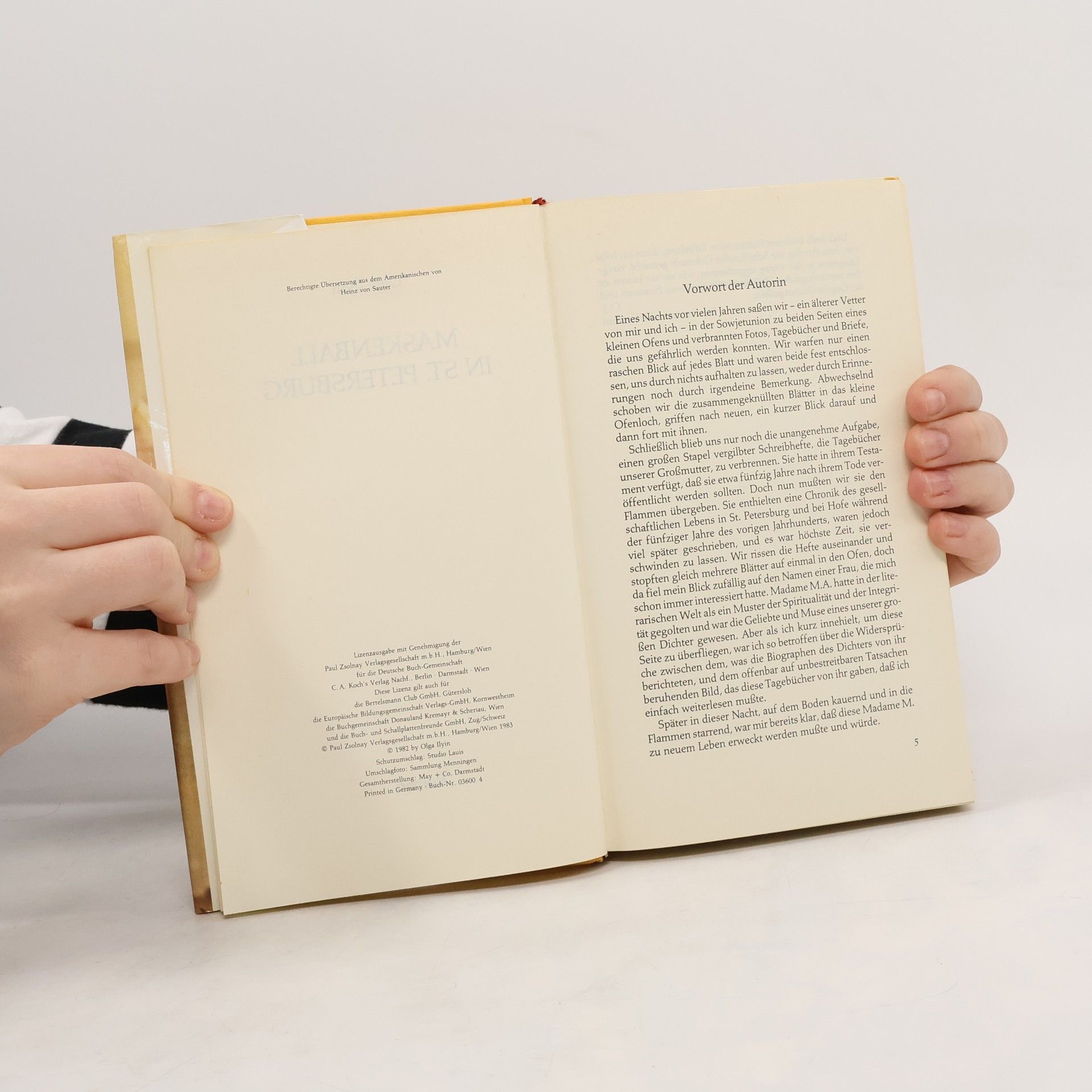 Als Olga Ilyin vor vielen Jahren in der Sowjetunion die Briefe und Tagebücher ihrer Großmutter verbrennt, fällt ihr Blick auf den Namen einer Frau, die in der Gesellschaft des 19. Jahrhunderts eine bedeutende Rolle gespielt hat. Der schillernden Gestalt der Madama M. A. setzt die Autorin mit ihrem Roman ein Denkmal. Olga Ilyin wuchs auf einem Landgut in Rußland auf und absolvierte ein Geschichtsstudium an der Universität von Kasan. Sie lebt mit ihrer Familie in Amerika. „Maskenball in St. Petersburg“ ist ihr zweiter Roman.