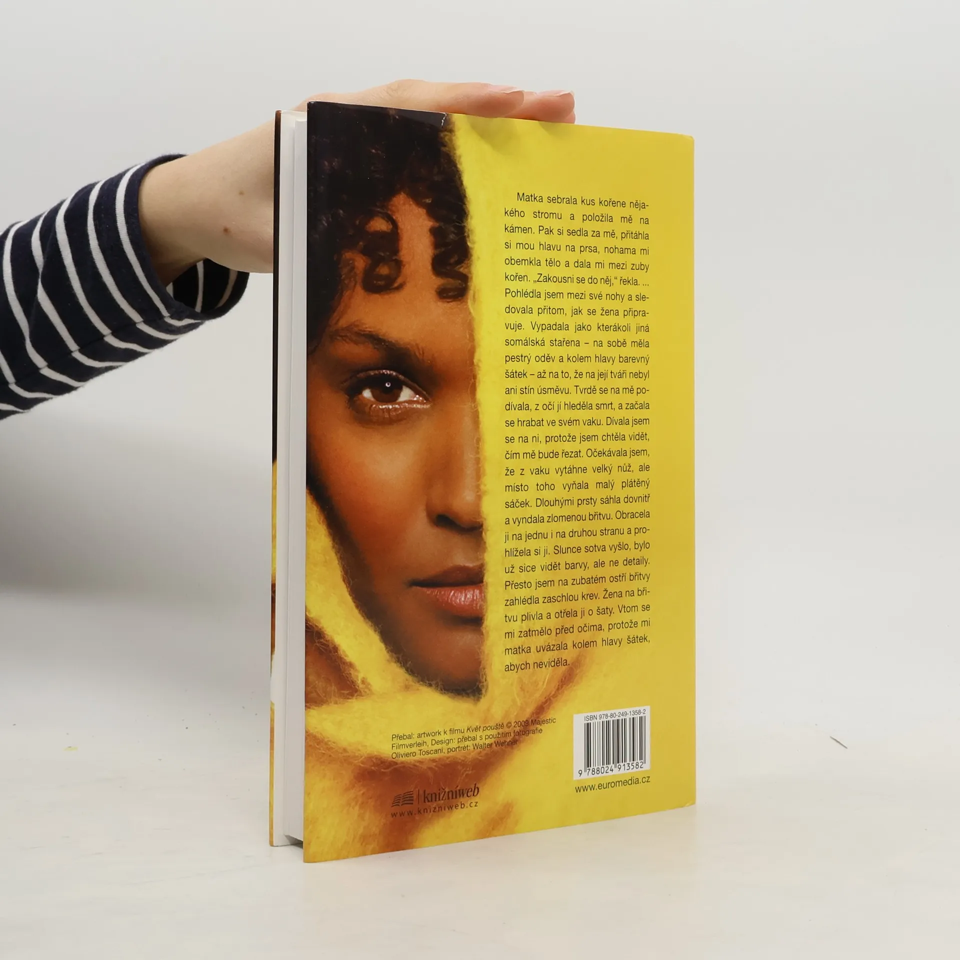 Waris Dirie pochází z rodiny kočovných nomádů, s nimiž vyrůstala v somálské poušti. V třinácti utekla do Mogadiša, odkud se po čase dostala do Londýna a do New Yorku, kde se jí podařilo vybudovat závratnou kariéru herečky, spisovatelky a supermodelky mezinárodního věhlasu. Waris Dirie je přední protagonistkou boje proti ženské obřízce – sama ví, o čem mluví. V pouhých pěti letech podstoupila infibulaci, nejkrutější formu ženské obřízky vůbec.