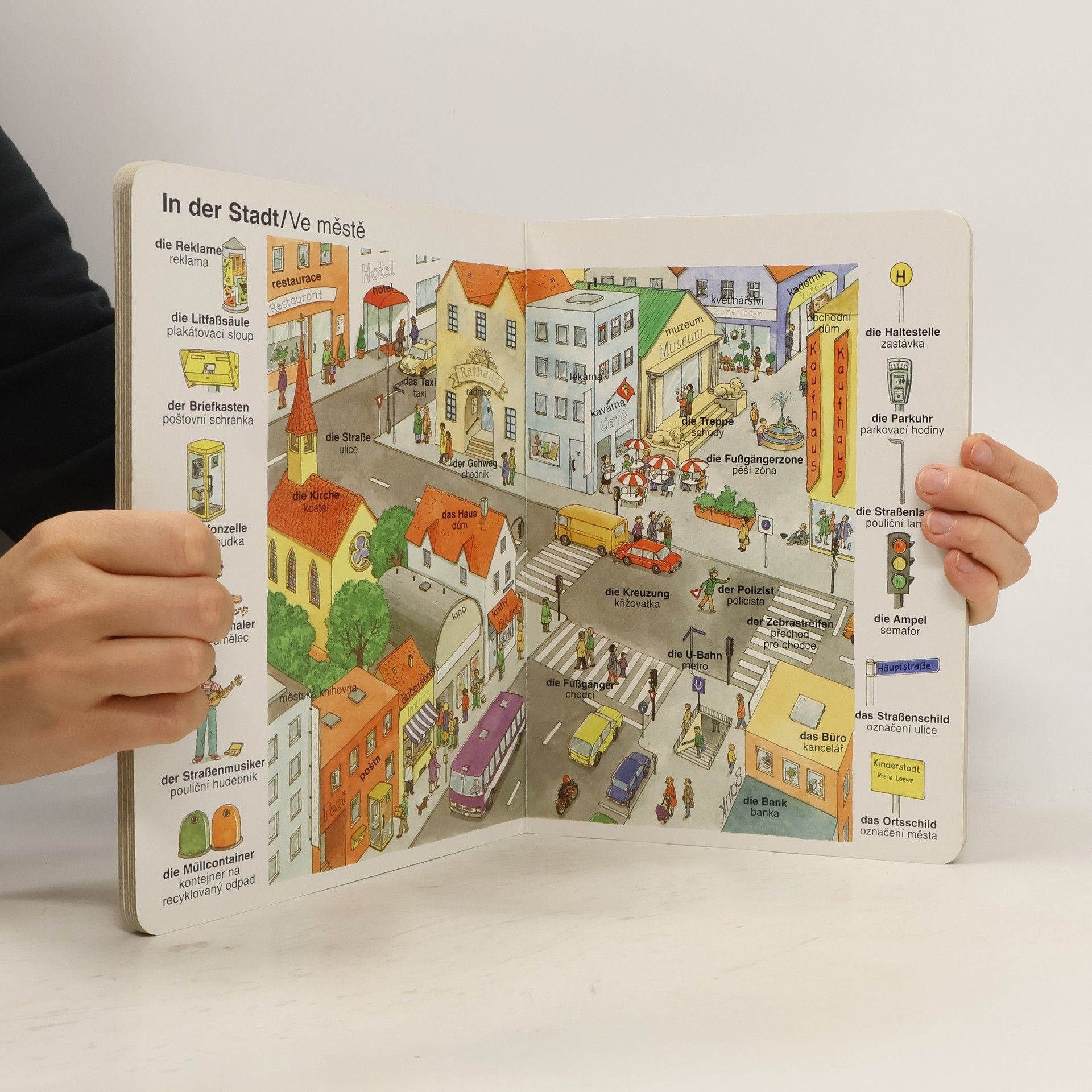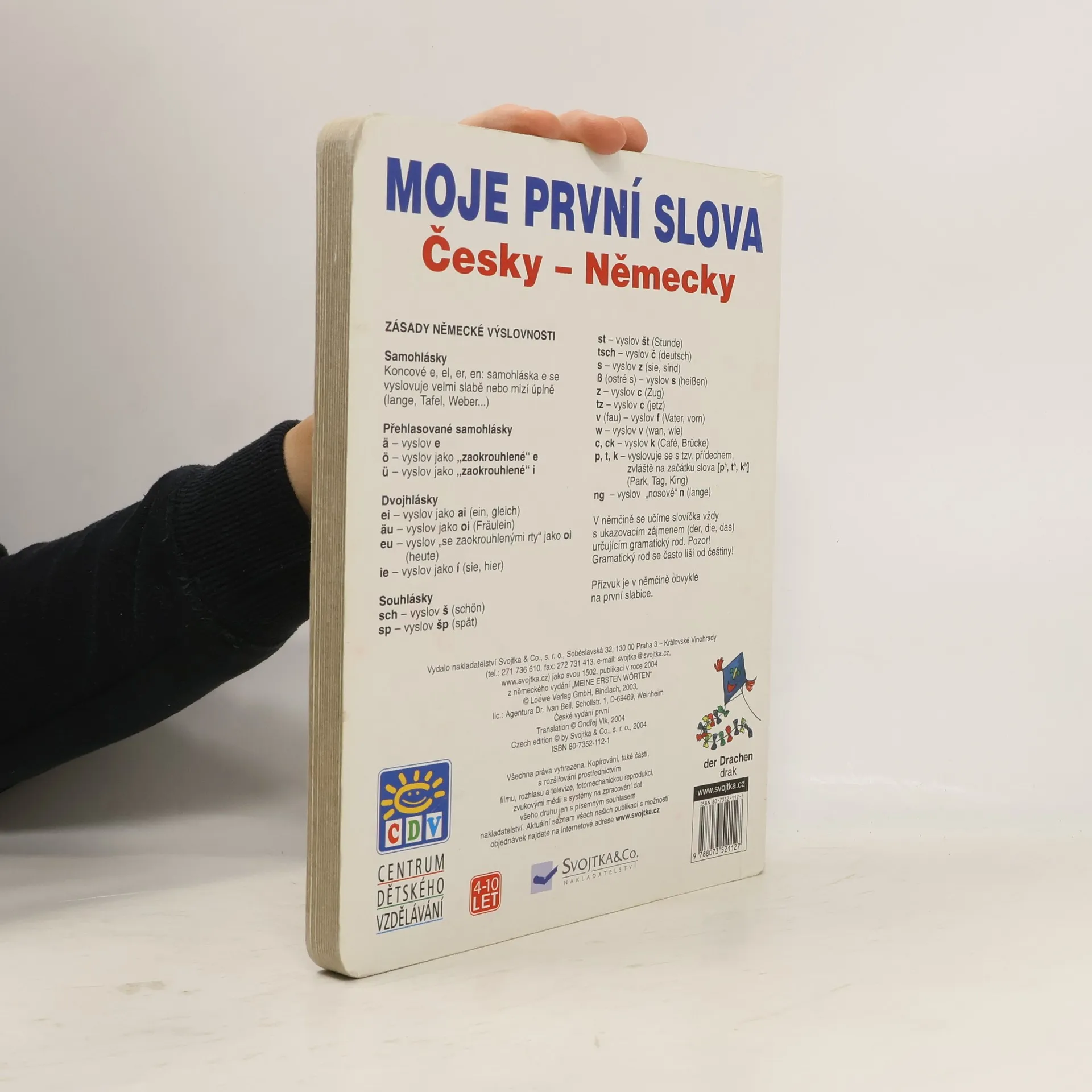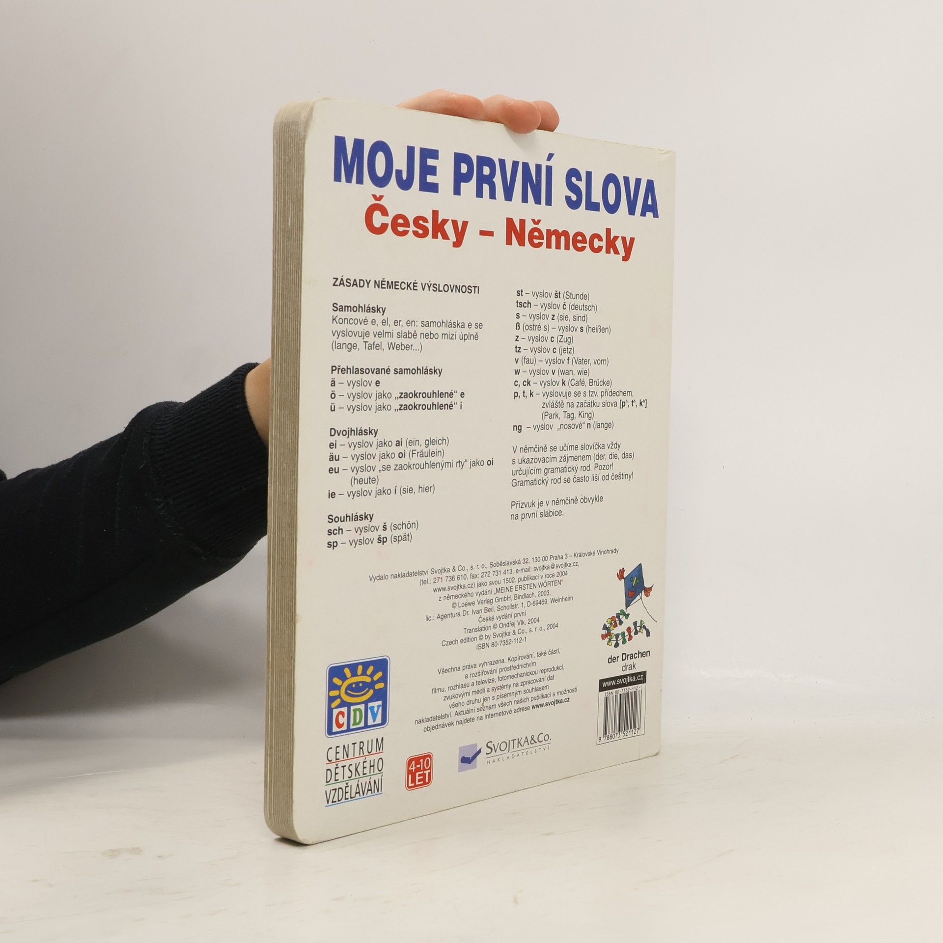 Ilustrované leporelo učící děti německy, doplněno zásady německé výslovnosti.