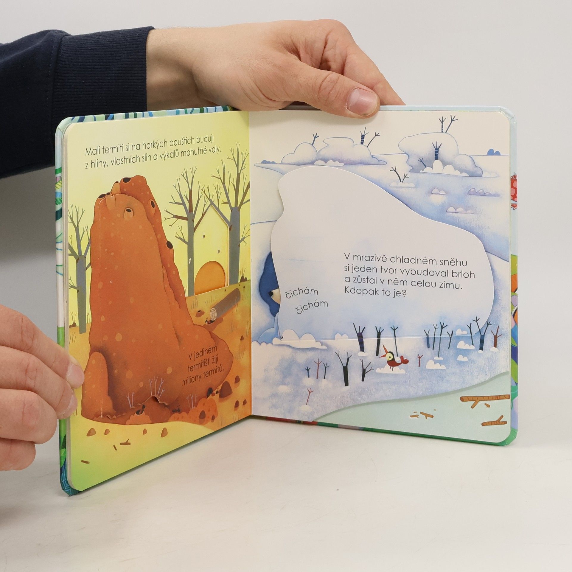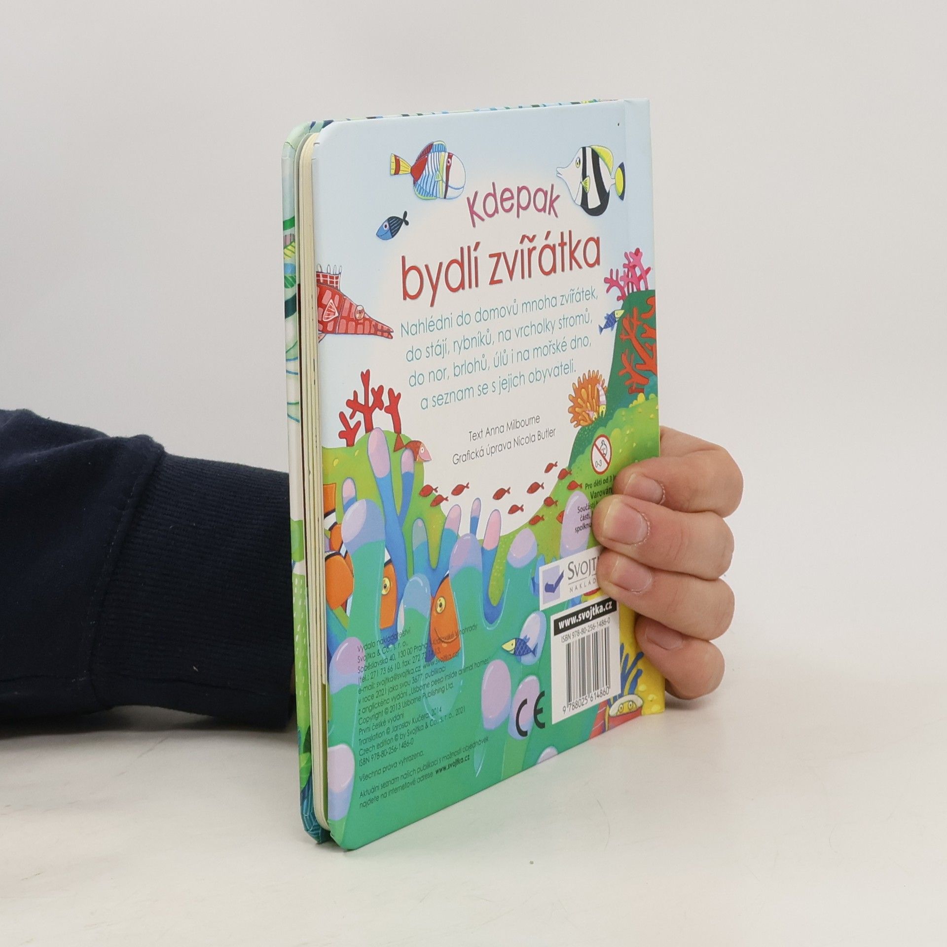Některá zvířátka bydlí v domečcích, které pro ně stavějí lidé? Kdo bydlí v tom maličkém? Jiná zvířátka rádi bydlí vysoko v korunách a v dutinách stromů? Kdo to je? Někteří tvorové si vytvářejí své domovy pod zemí? Kdo tady má svou noru?... Kdepak všude bydlí zvířátka? Nahlédni do jejich domovů, do stájí, rybníků, na vrcholky stromů, do nor, brlohů, úlů i na mořské dno, a seznam se s jejich obyvateli. Tak honem, zalistuj v knížce, otevři všechna okénka a podívej se pod ně.