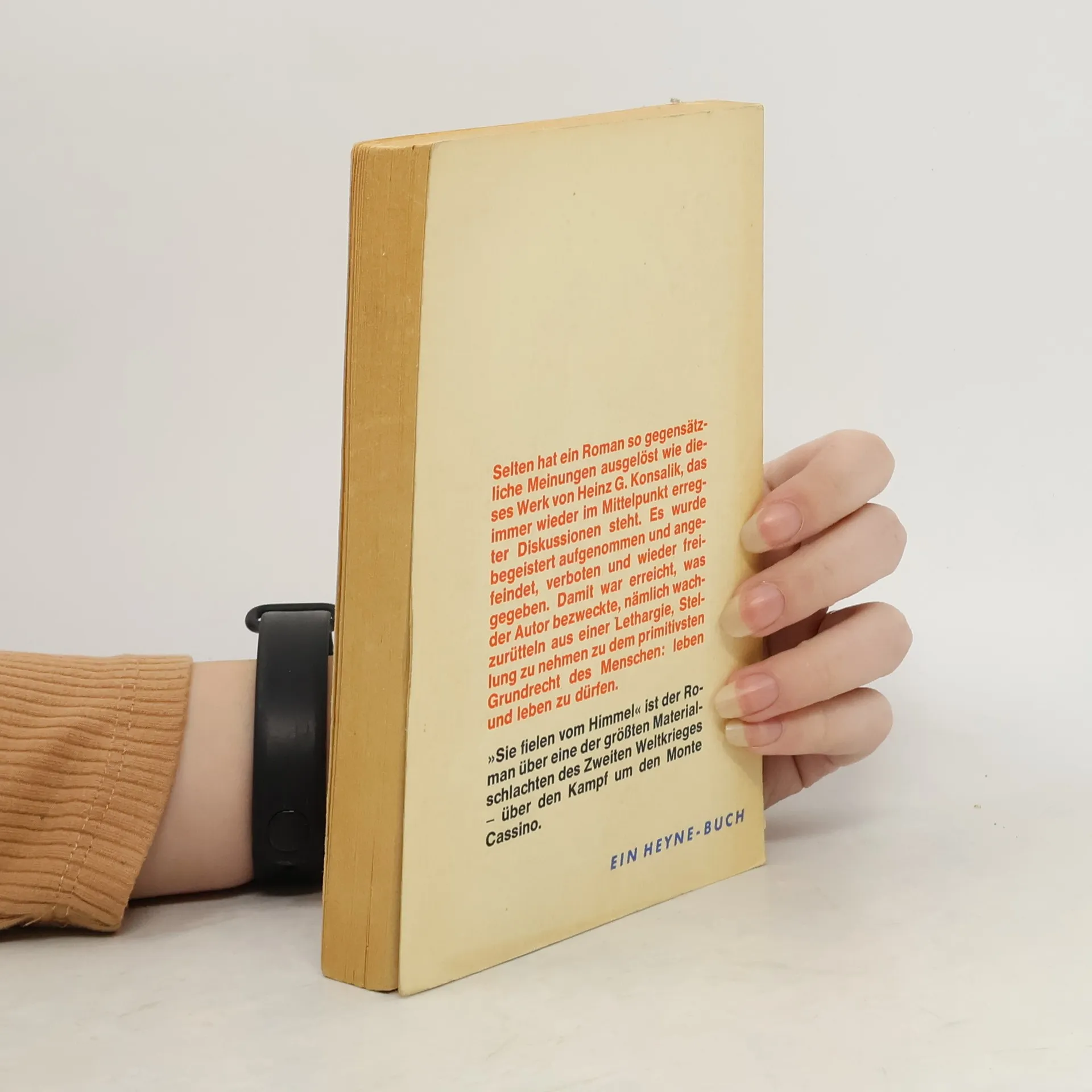'Sie fielen vom Himmel' ist der Roman über eine der größten Materialschlachten des Zweiten Weltkrieges – über den Kampf um den Monte Cassino. Selten hat ein Roman so gegensätzliche Meinungen ausgelöst wie dieses Werk von Heinz G. Konsalik, das immer wieder im Mittelpunkt erregter Diskussionen steht. Es wurde begeistert aufgenommen und angefeindet, verboten und wieder freigegeben. Damit war erreicht, was der Autor bezweckte, nämlich wachzurütteln aus einer Lethargie, Stellung zu nehmen zu dem primitivsten Grundrecht des Menschen: leben und leben zu dürfen.